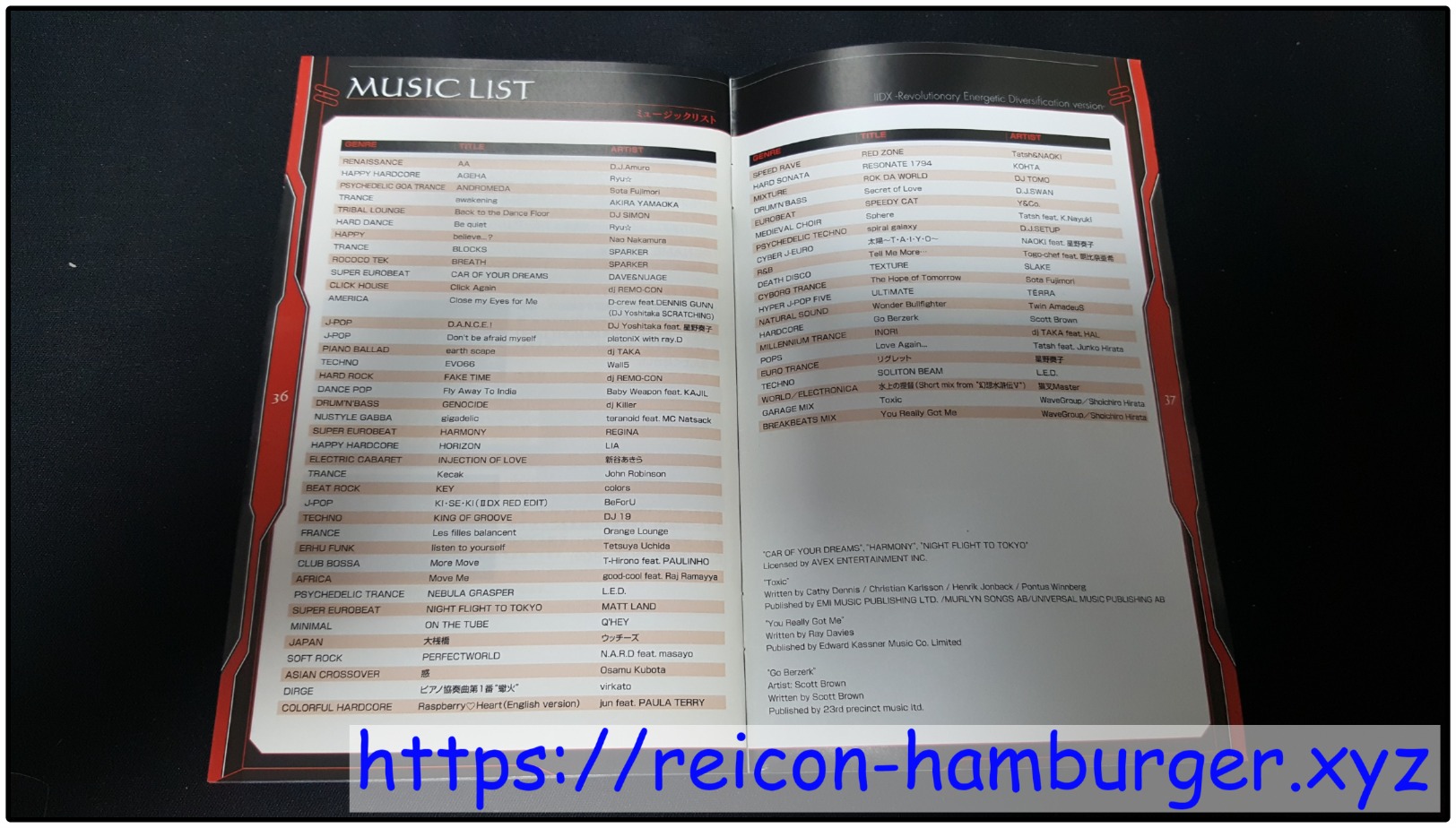 매뉴얼과 정체 불명의 엽서가 있고, 표지는 곡 목록이 나와있습니다.