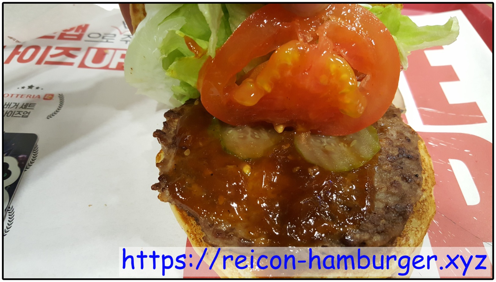 토마토와 피클이 추가되고 번과 패티가 바뀐 구성인데, 패티는 100% 한우가 절대로 아니니 낚이면 안 됩니다.