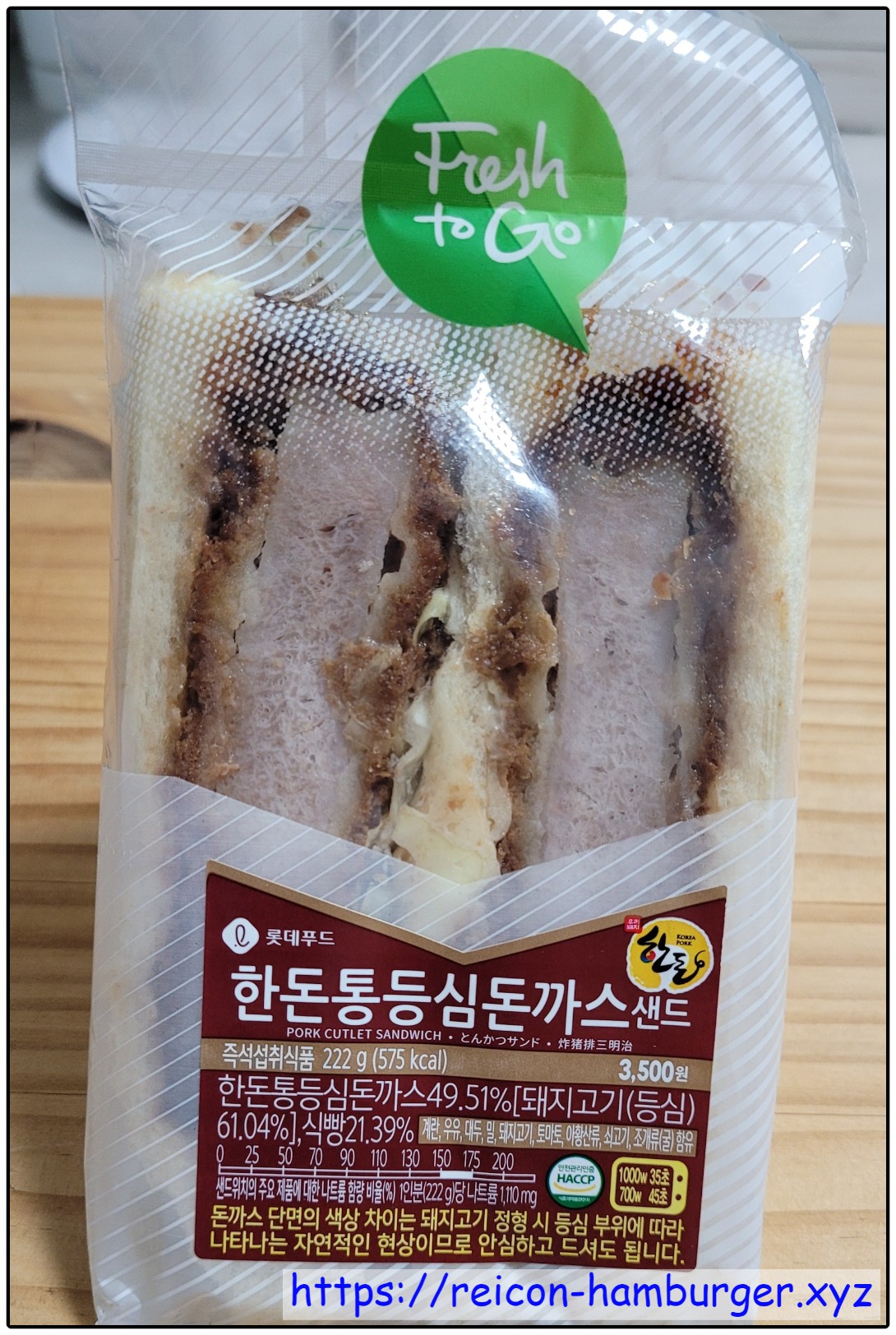 가격은 3500원으로, 엄청 두툼한 돈가스 하나가 통채로 들어간 것이 눈에 확 띄어서 바로 집었네요.