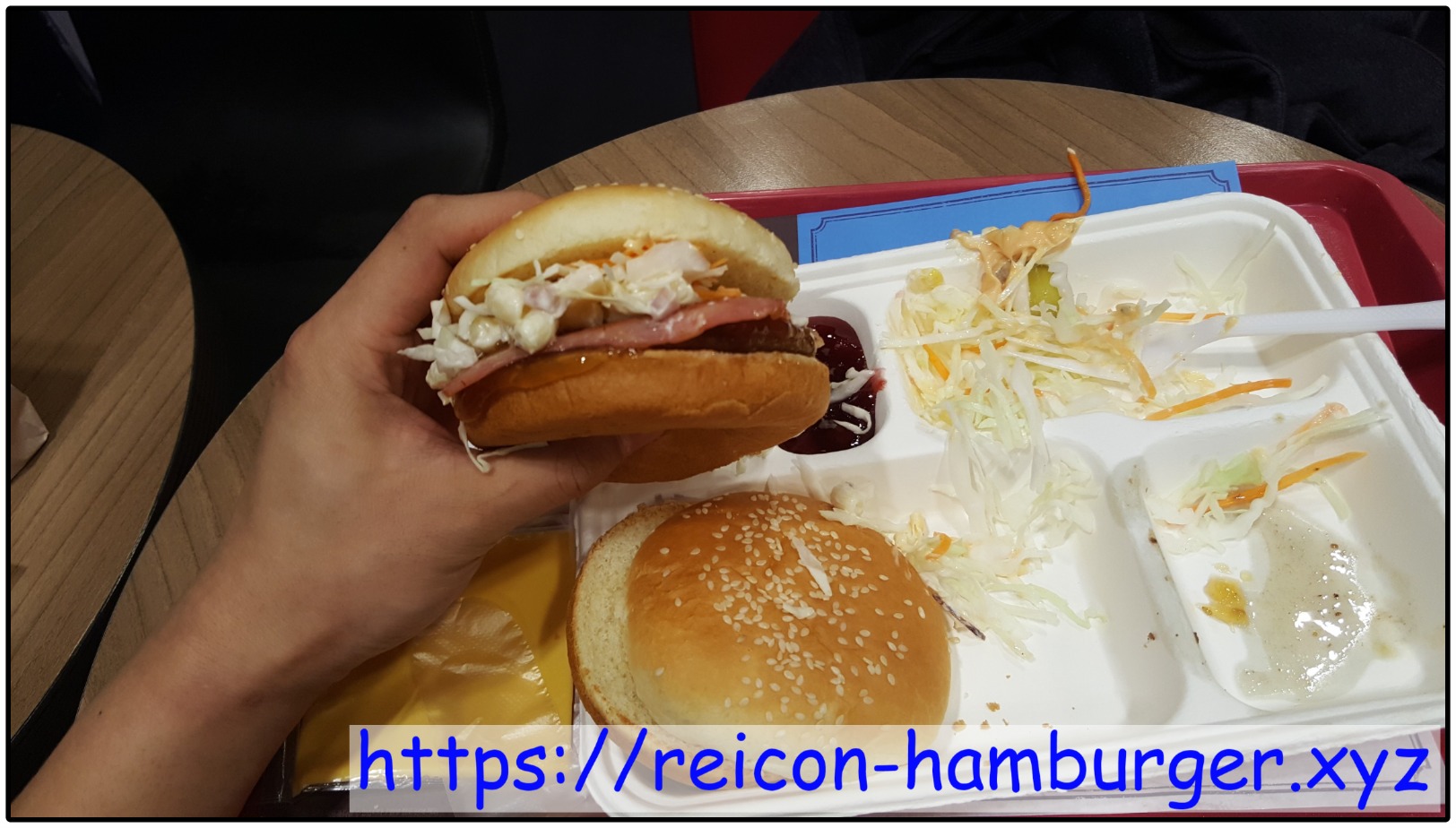 특히 딸기잼과 불고기소스가 패티와 섞이는 순간 아주 끝장이 나게 되는데, 그로 인해 평범한 패티도 아주 저급한 느낌이 나서 기분을 더럽게 만드는 마성의 맛이 나고, 슬라이스 햄 혼자 정상적으로 열심히 일하다가 과로사로 결국 뒤져버리는 바람에 끝까지 ㅈ같은 맛으로 남게 되구요.