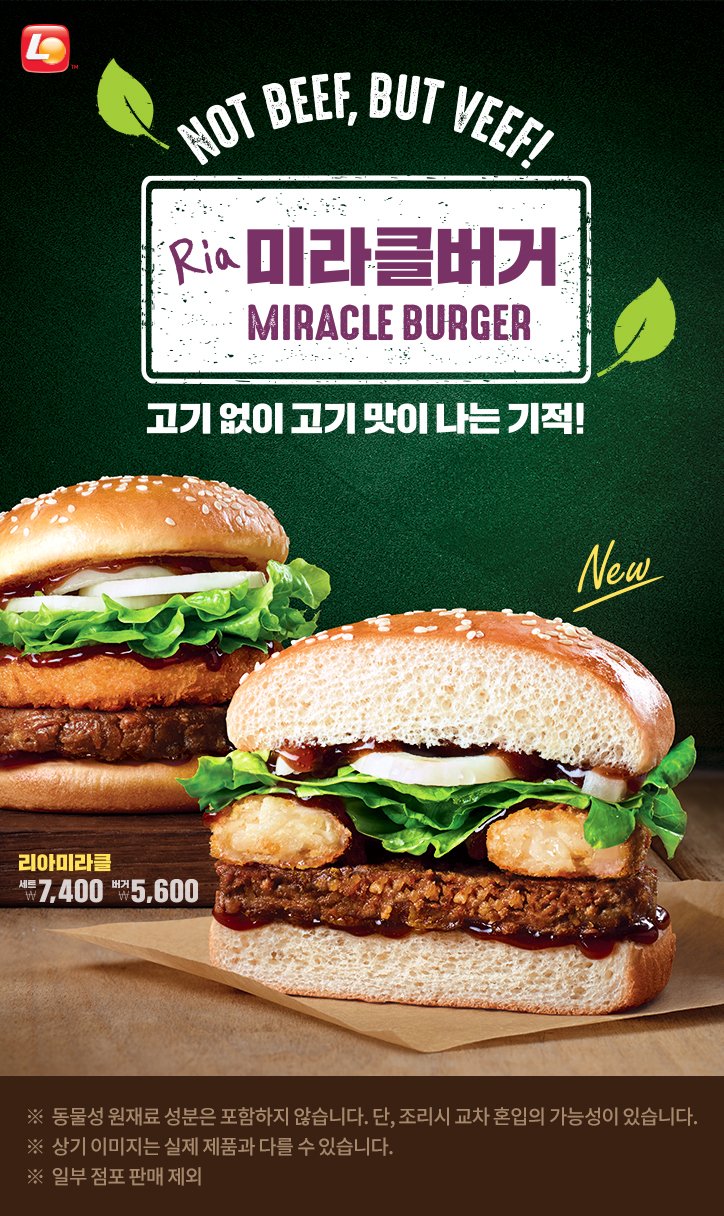 식물성 패티인 콩고기 패티를 사용한 '리아 미라클버거'.