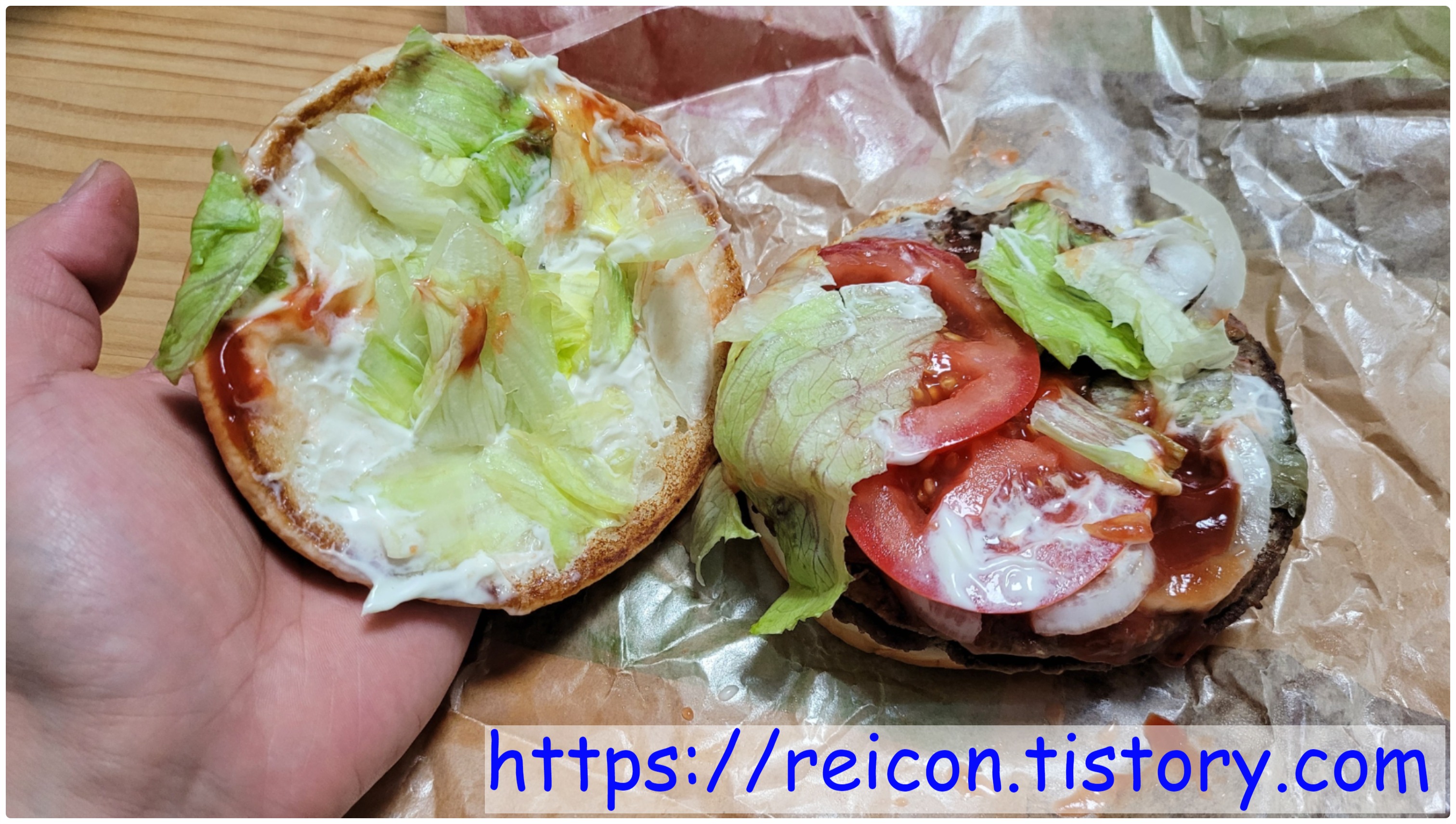물론 이런 느낌의 더블 패티를 좋아하는 사람은 정말 최고의 맛이겠지만, 개인적으론 맛은 분명히 좋긴 하지만 기존 와퍼가 더 맛있었네요.