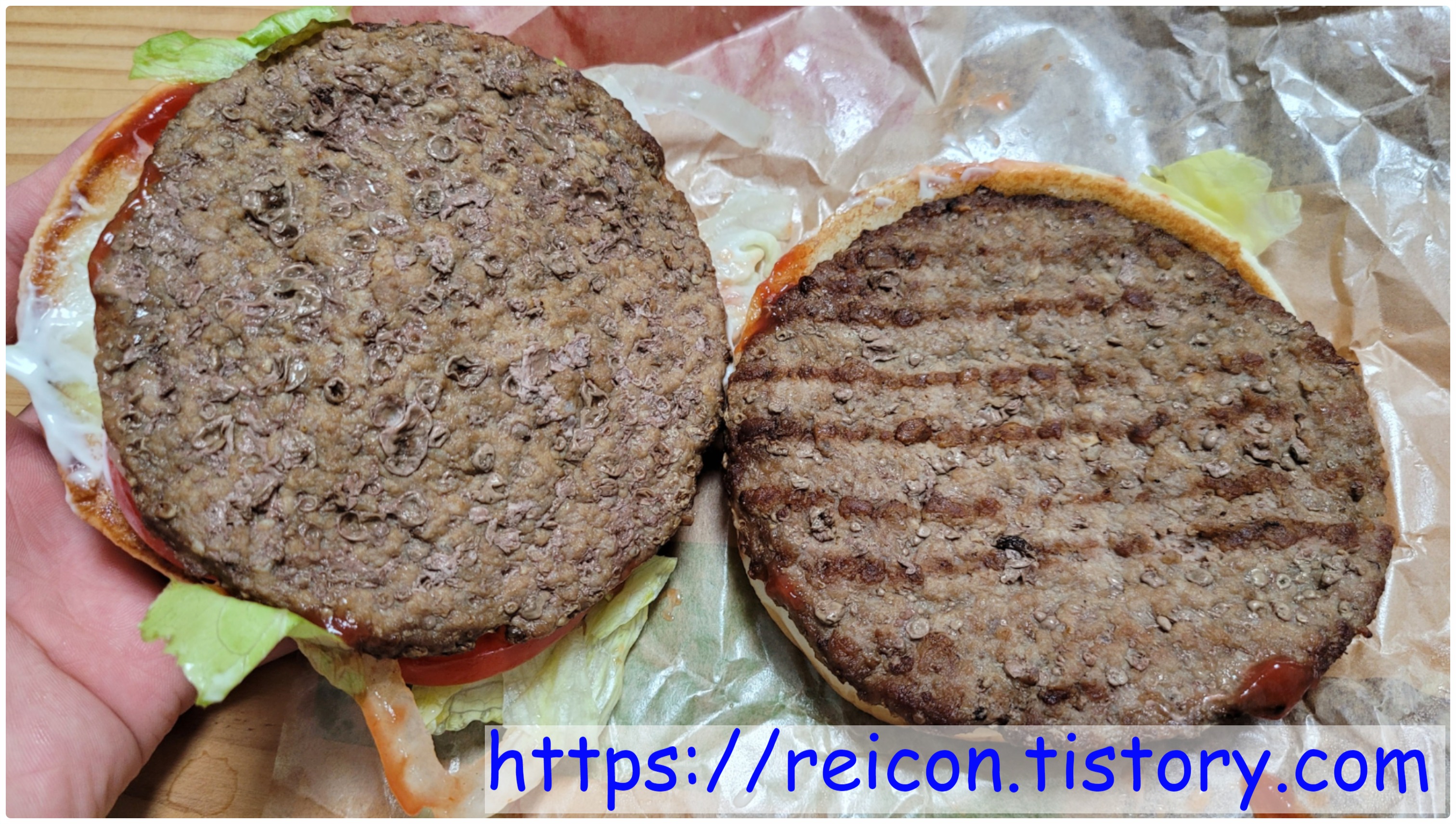 그런데 그 하나의 차이가 비프 패티의 비중을 엄청나게 높였고, 그로 인해 식감이 굉장히 묵직해졌습니다.