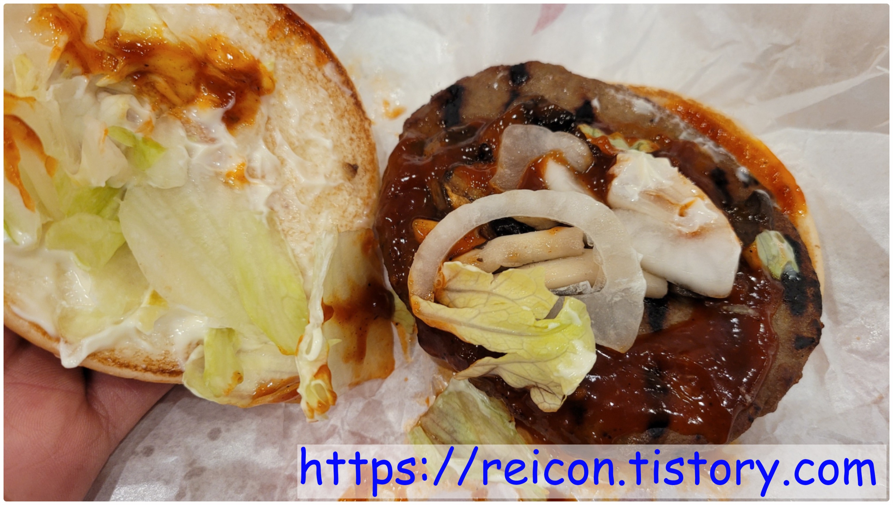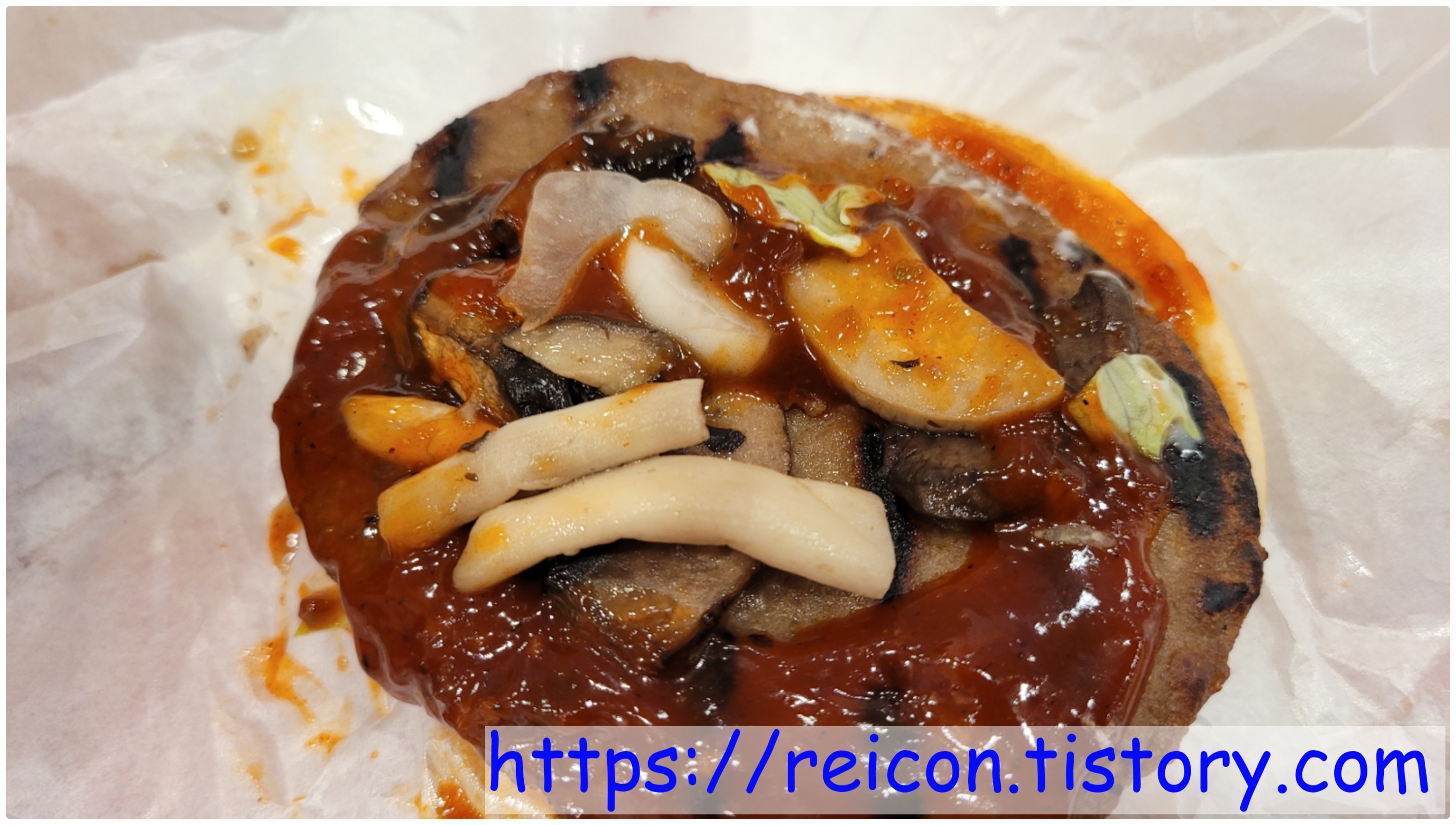 그리고 버섯 특유의 고소함이 소스와 섞여 은은하고도 천천히 입 안 전체적으로 퍼지는데, 양파와 패티가 물리지 않게 양쪽으로 잡아주어 모두가 원했던 '매콤한 불고기버거'가 드디어 제대로 나온 것 같아서 더욱 좋았네요 ㅎㅎ