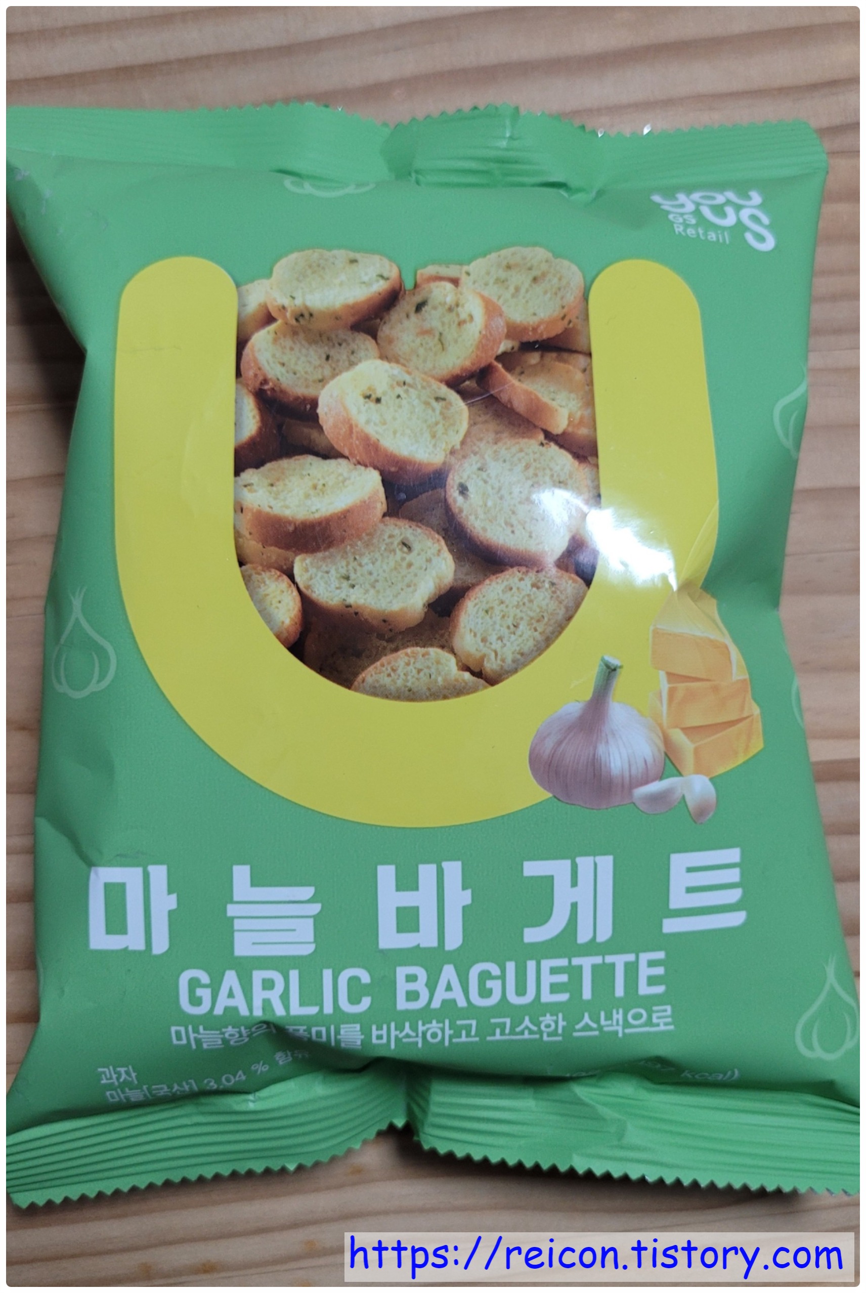 흔히 볼 수 있는 그 '마늘빵'을 스낵으로 만든 것이기도 하죠.