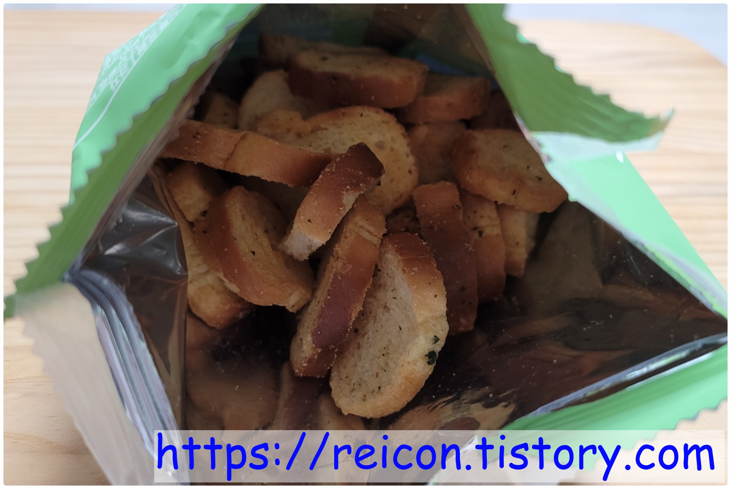 딱 먹기 좋은 한입 크기의 마늘바게트 스낵으로, 딱딱하지 않고 바삭하면서도 부드러워 한 입에 넣기 정말 좋더라구요.