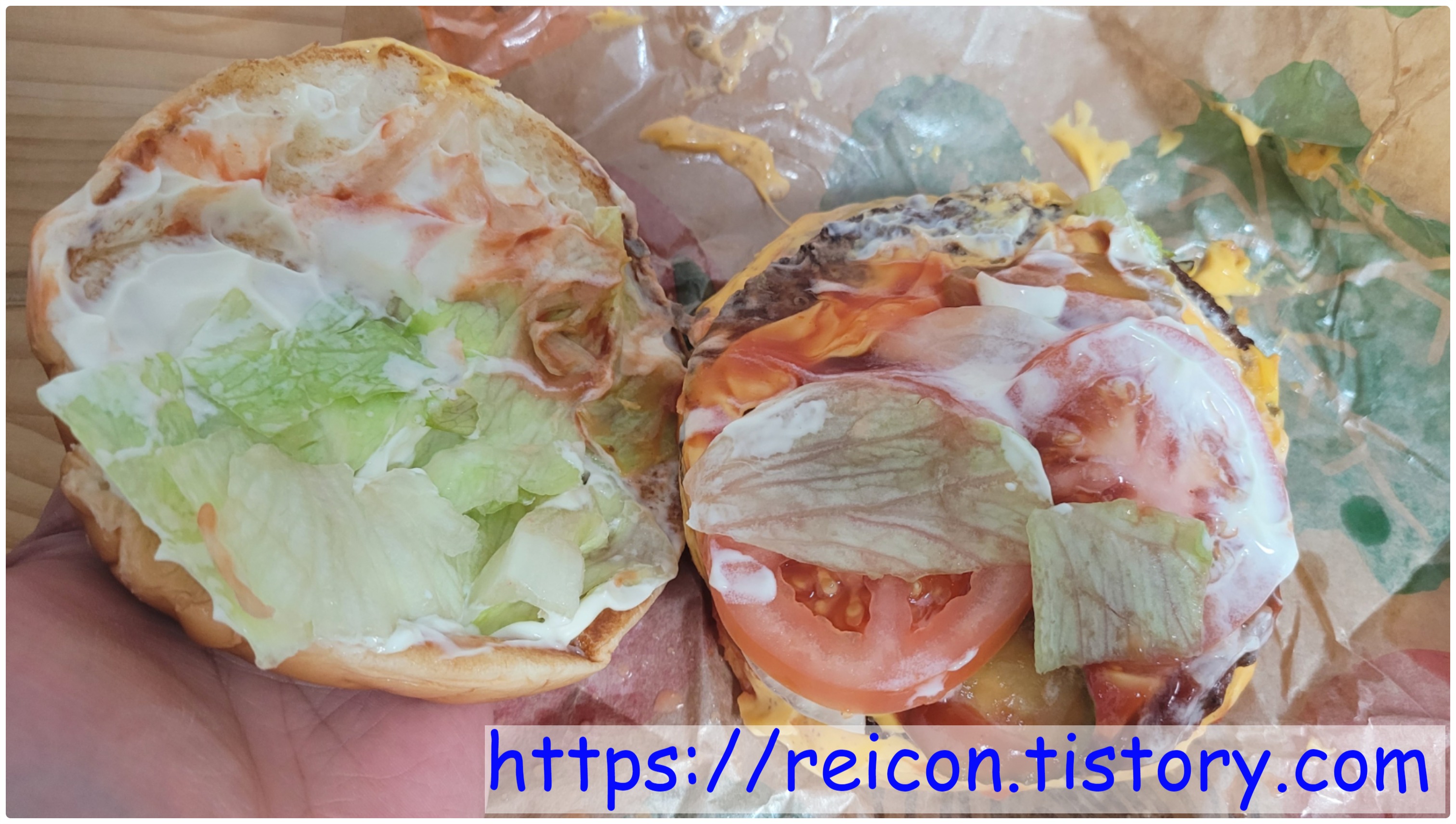다만 양이 진짜 엄청나게 많기에 혼자 하나를 다 먹기보단 절반만 먹는 것이 좋으며, 패티와 치즈 말고 다른 재료들은 완벽하게 묻히는 수준이라 호불호가 굉장히 크게 갈리죠.