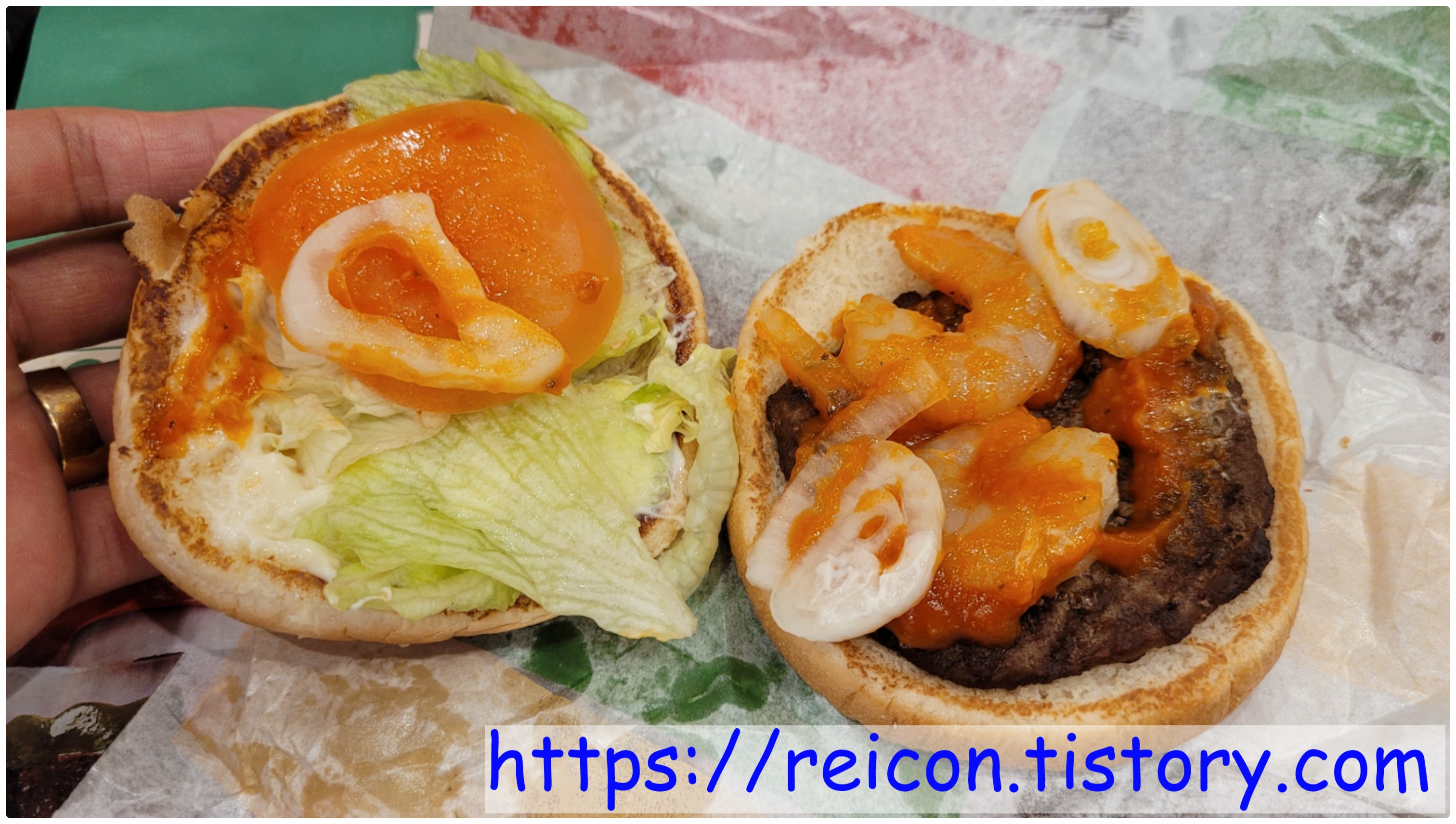 그리고 토마토의 새콤함과 양상추가 과하지 않게 잡아주어 중심을 잘 잡아주었고, 그로 인해 호불호가 거의 없어 버거킹에 간다면 가장 먼저 추천할 정도로 깔끔한 맛도 자랑하죠.
