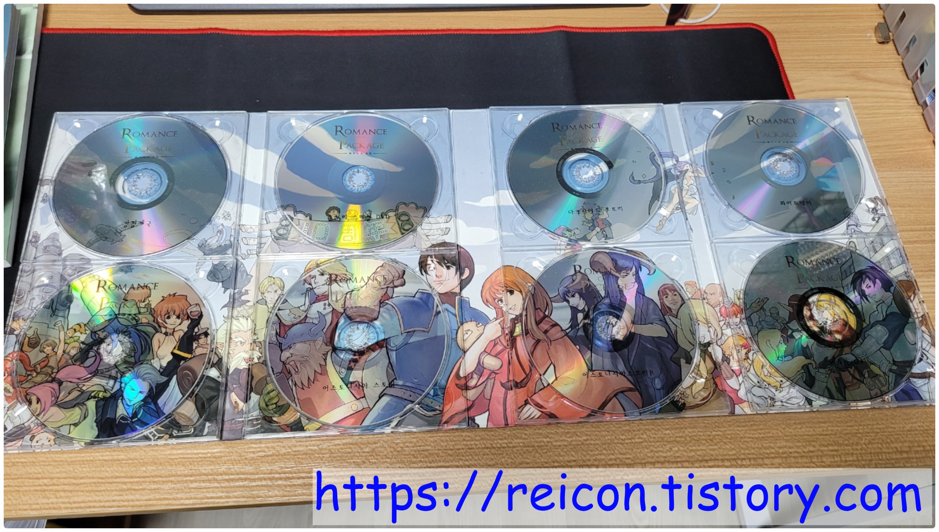 왼쪽 위부터 차례대로 '강철제국', '손노리 스페셜 DVD', 다크사이드 스토리', '화이트데이', '악튜러스', '어스토니시아 스토리', '어스토니시아 스토리 R', '포가튼 사가'까지 총 8개가 들어있습니다.