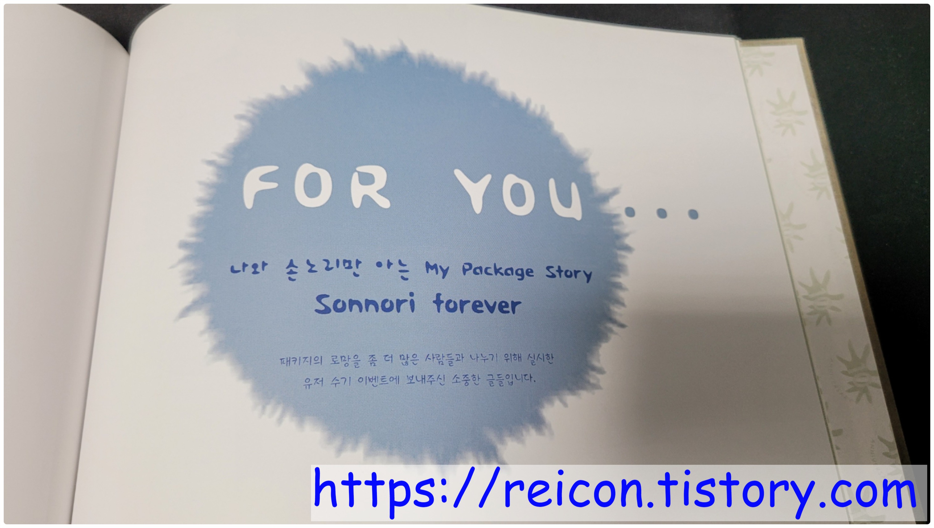 패키지의 로망을 출시한 이유와 손노리의 역사들이 적혀있는 것으로, 손노리의 팬이라면 무조건 봐야될 것들로만 가득하죠.