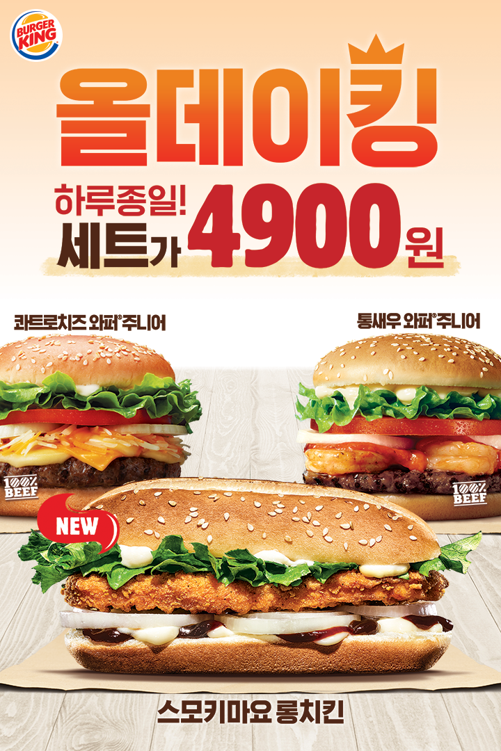 버거킹에 새로운 올데이킹 시리즈가 나왔습니다!!