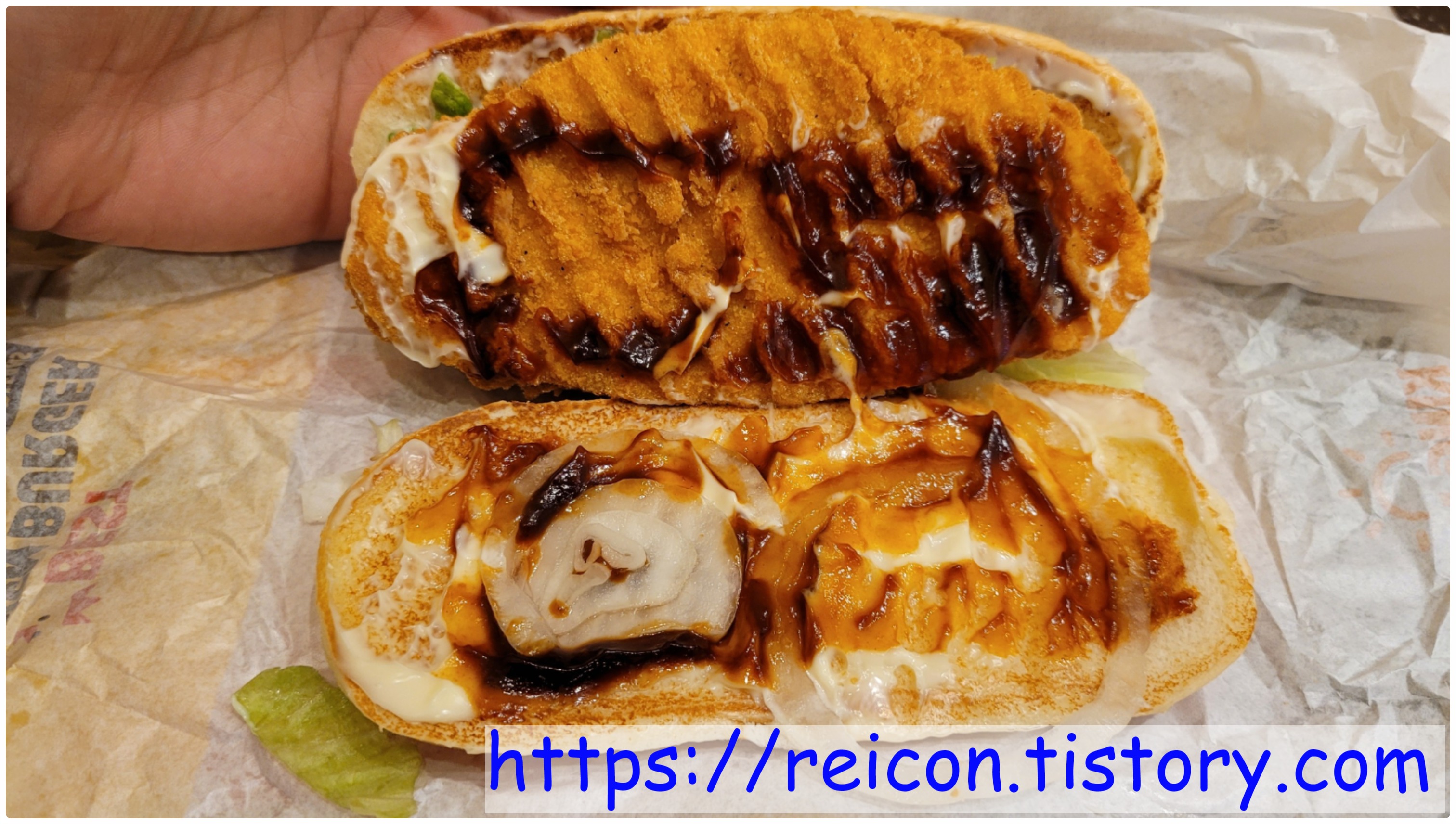 다만 살짝 아쉬운 점으론 빵이 아직도 조금 퍽퍽한 느낌이 들어 마무리가 좋지 않고, 그리고 양파는 전체적으로 있는 것이 아니라 있는 부분과 없는 부분의 맛의 차이가 꽤나 크게 느껴지기도 했네요.