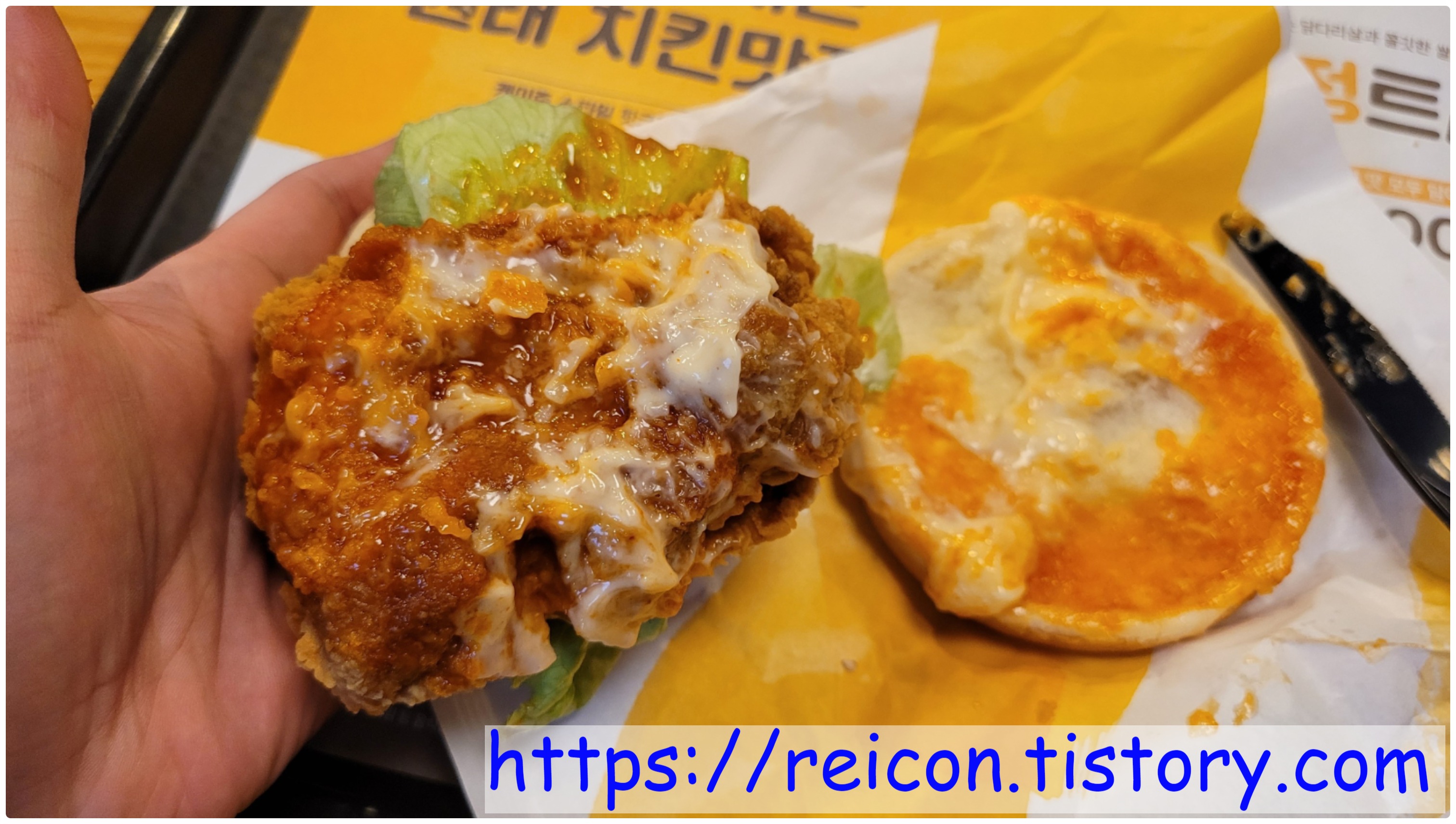 투존치킨 이라는 곳에 '치빵버거'라고 빵 사이에 소스와 치킨을 넣어서 먹는 메뉴가 있는데, 이걸 먹으면서 계속 생각날 정도로 맛이 굉장히 비슷할 정도입니다.