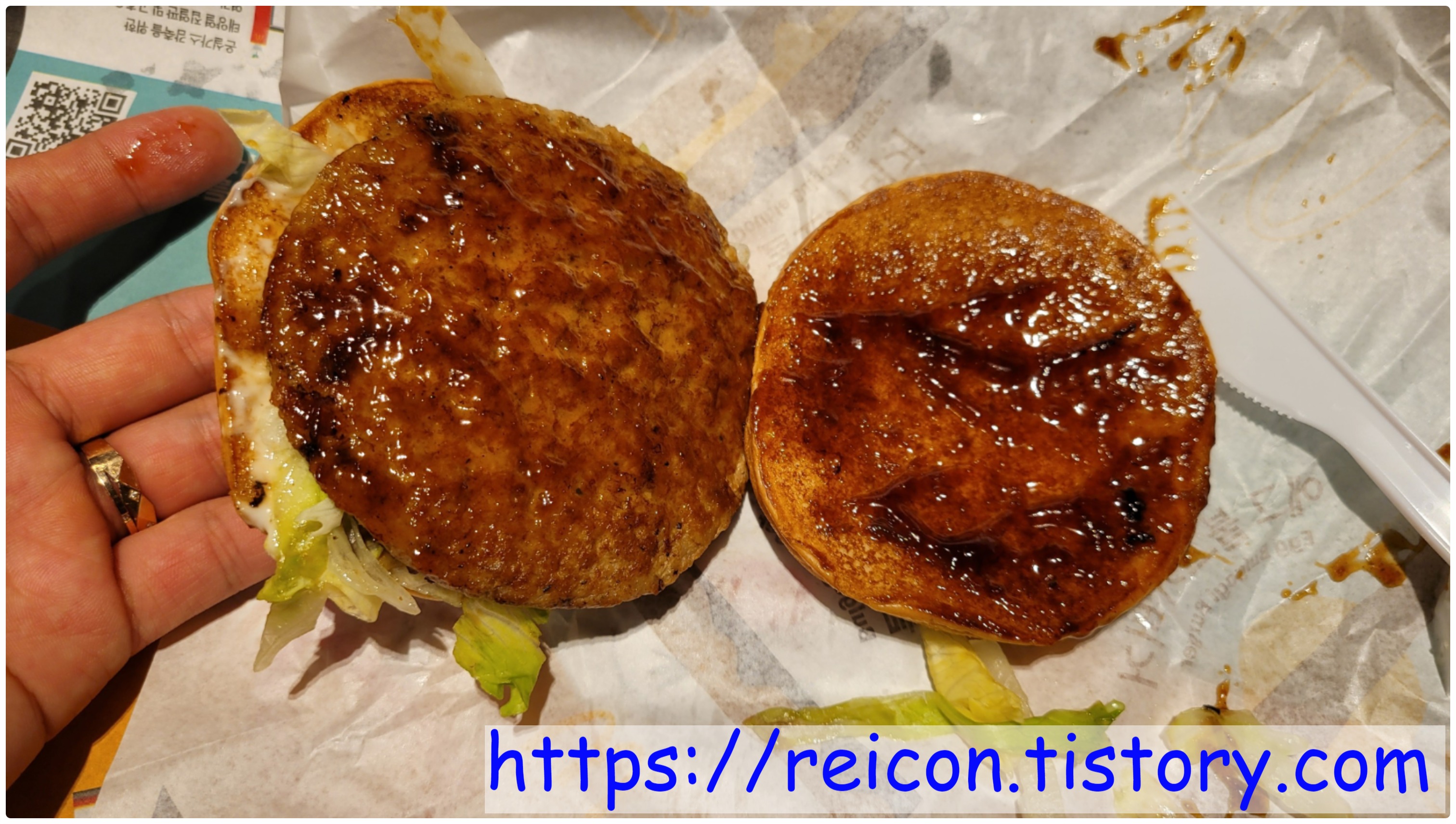 패티를 예전처럼 다시 소스에 절여서 나오는 것 같아서 그나마 다행이긴 했지만, 예전에 먹었던 맛과는 조금 차이가 나기도 했구요.