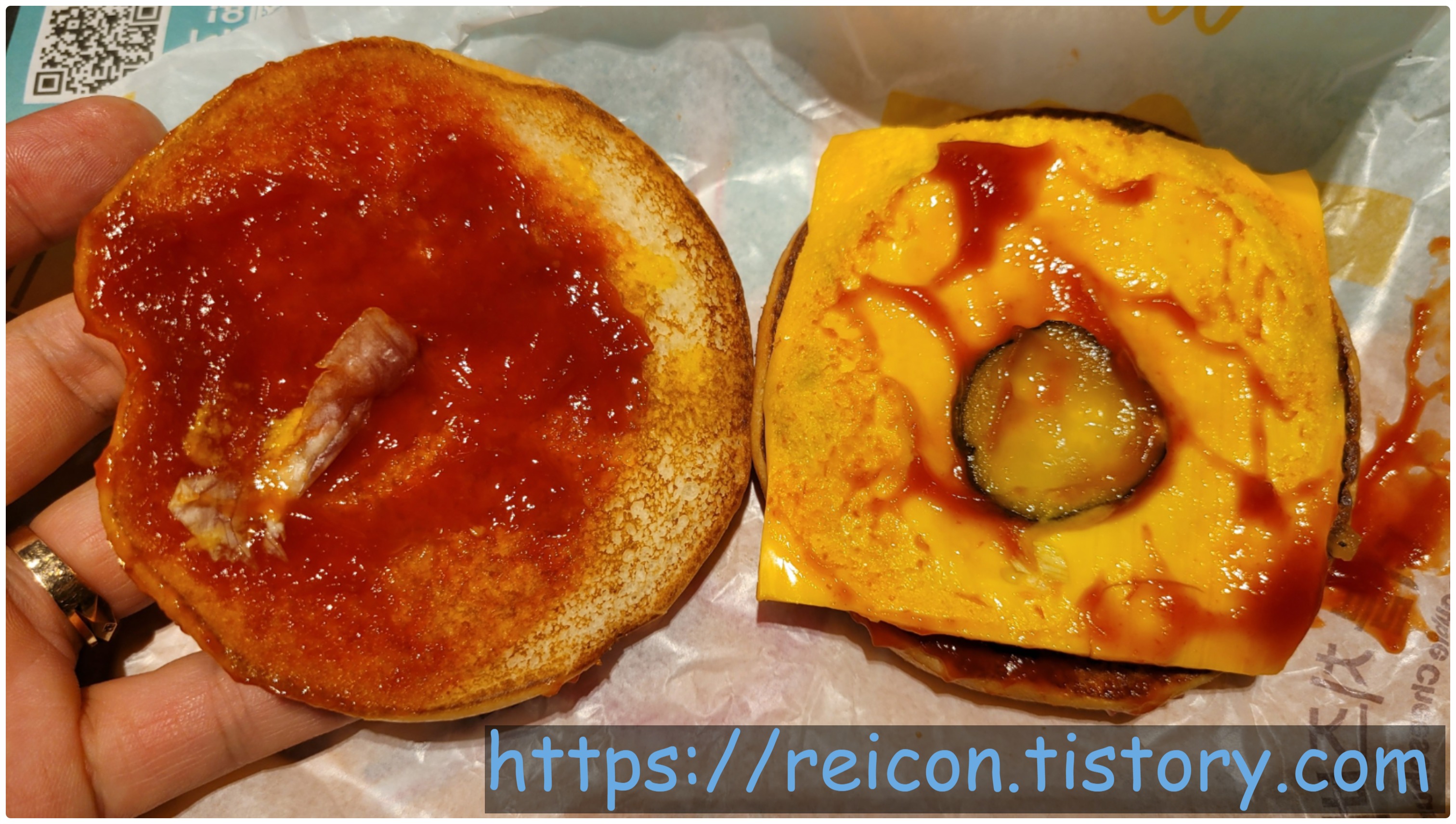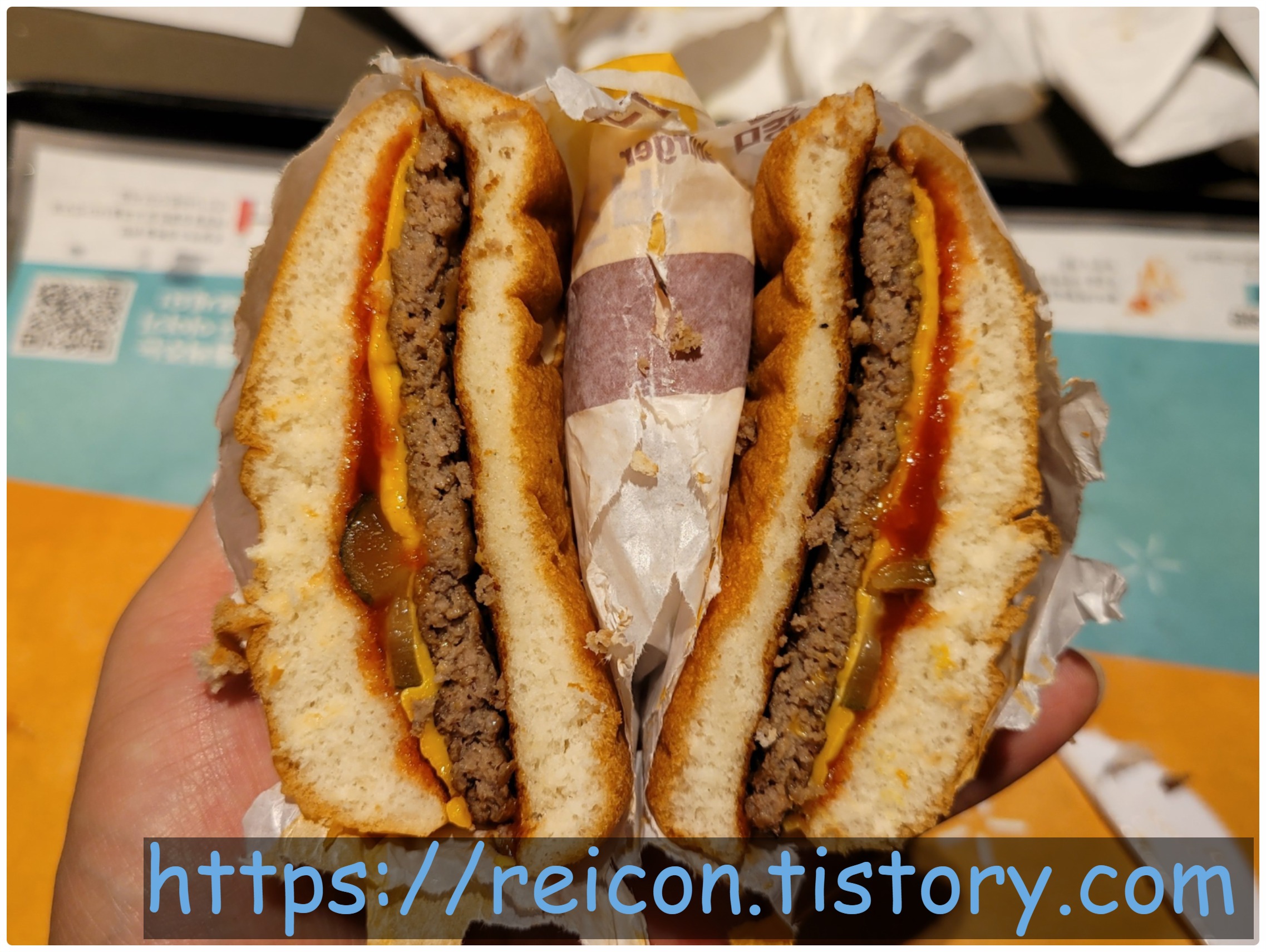 그리고 새콤한 케첩과 달달한 머스타드 소스의 조합에 비프 패티의 향과 치즈의 맛까지 담백하게 나는 것까지는 좋았으나, 문제는 그 맛이 그리 많이 나지 않는 데다가 그냥 먹을만하기만 할 뿐 두번 다시는 생각 조차 나지 않을 정도구요. 세 번이나 쳐먹은 나는 ㄹㅈㄷ