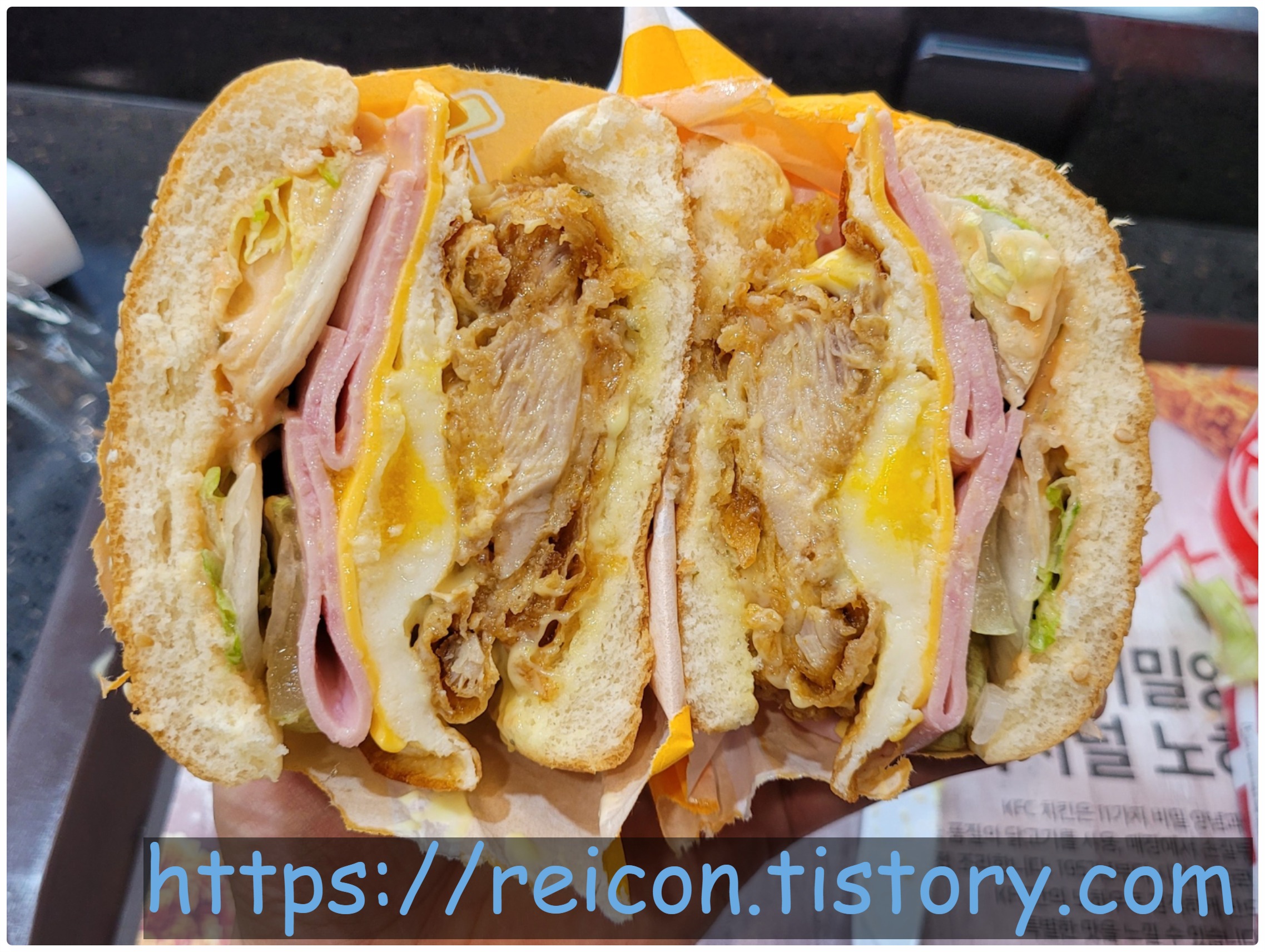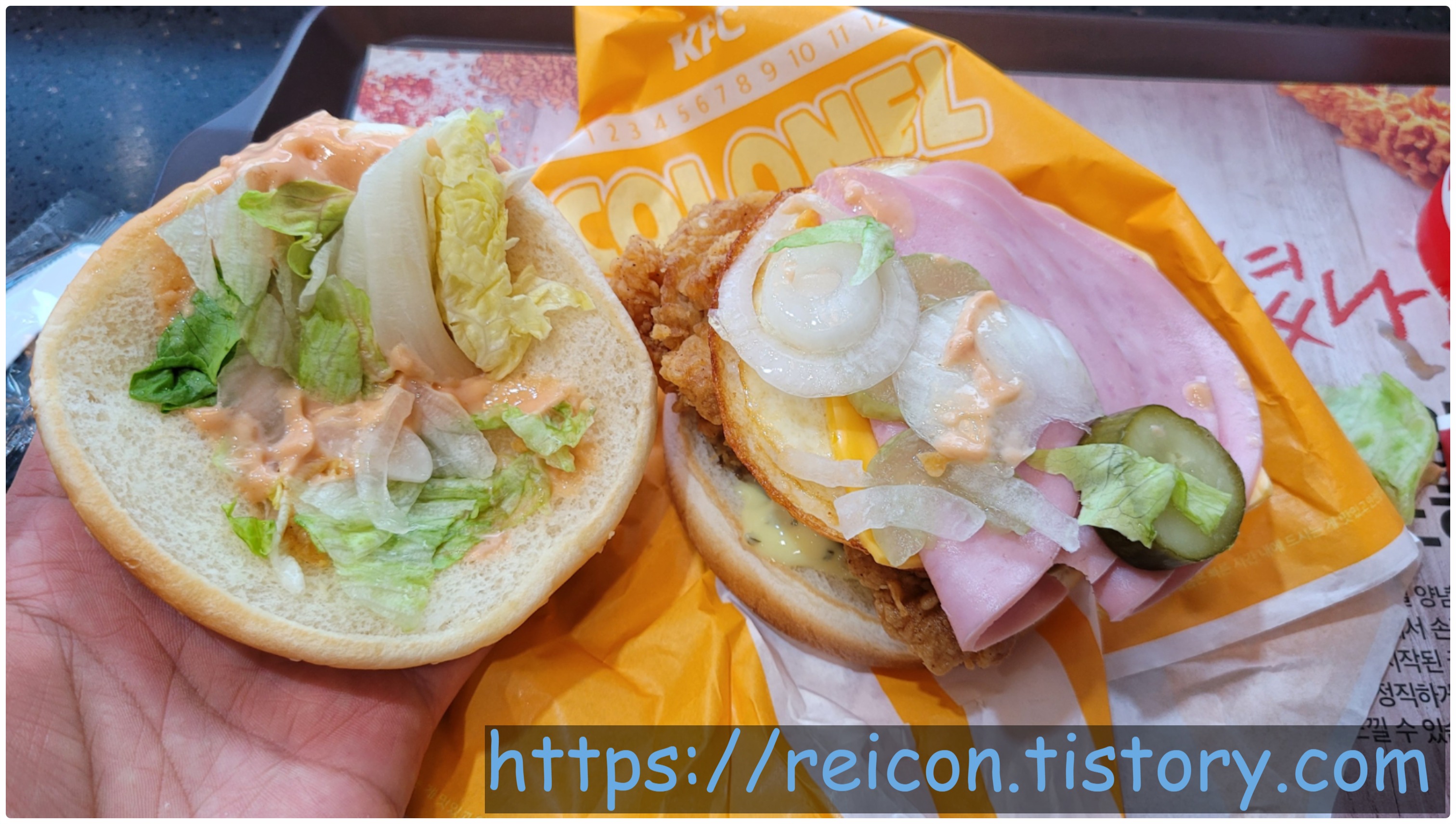 그런데 KFC에서 유독 눈독을 들였는지, 정말 재료 하나 틀리지 않는 똑같은 구성으로 카피한 버거가 있습니다.