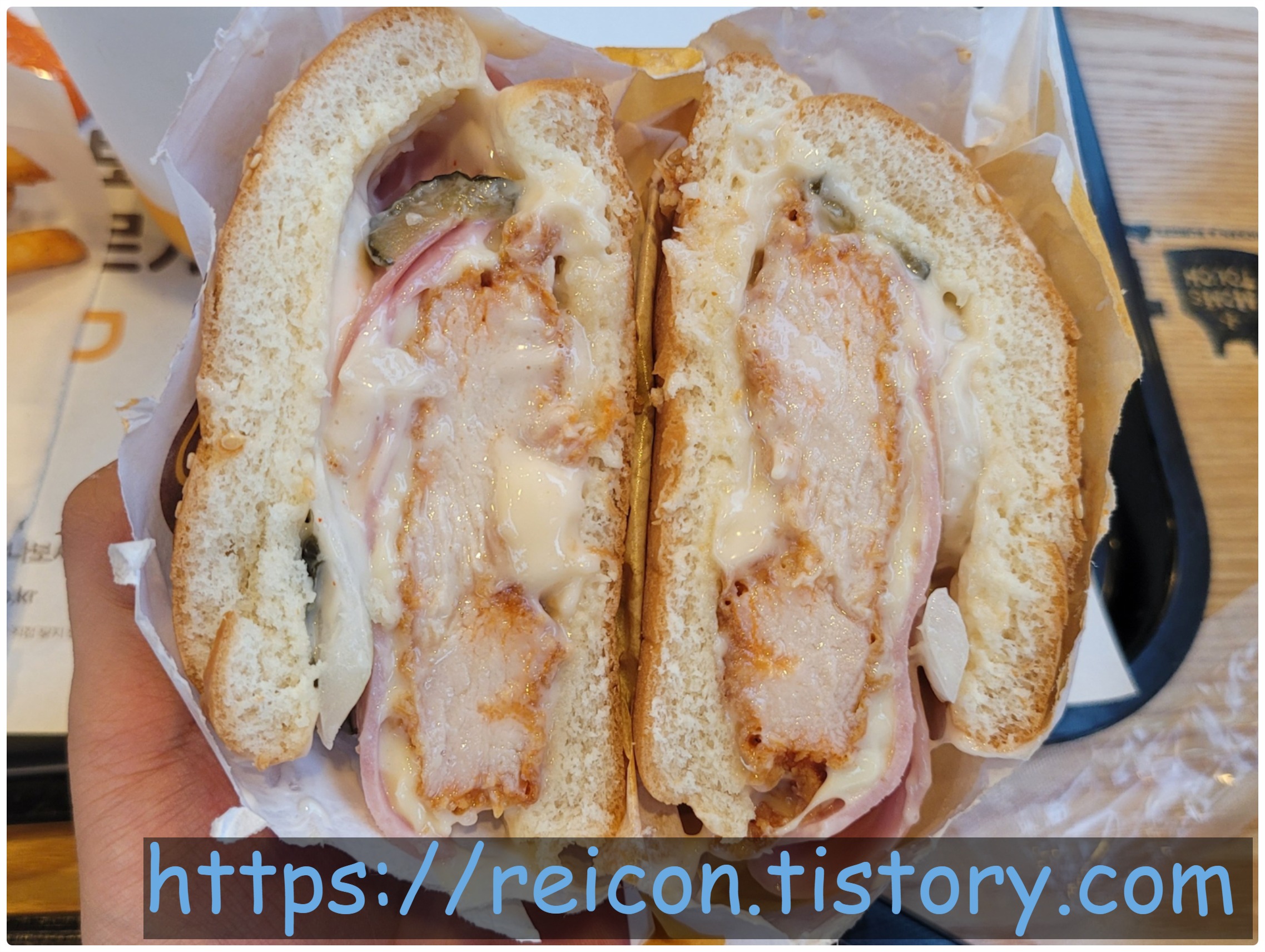 양상추가 없어서 그런지 뭔가 눌려진 모양이네요;