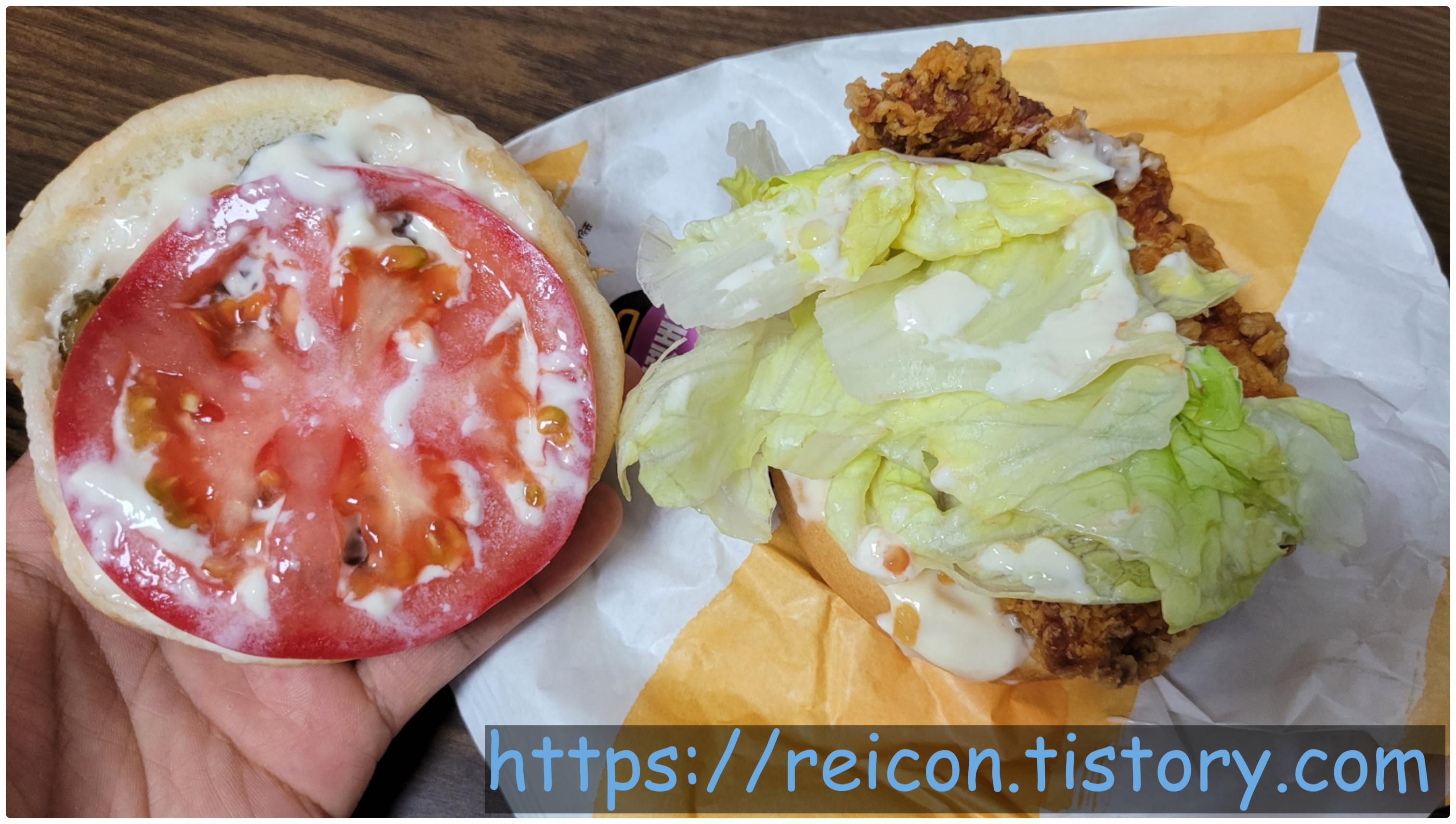 양상추도 풍성하게 있는 덕에 신선한 느낌과 아삭한 식감도 기분좋게 다가왔으며, 토마토 특유의 새콤달달한 맛이 계속 스며들어 패티의 식감이 더욱 부드럽게 느껴지기도 했구요.