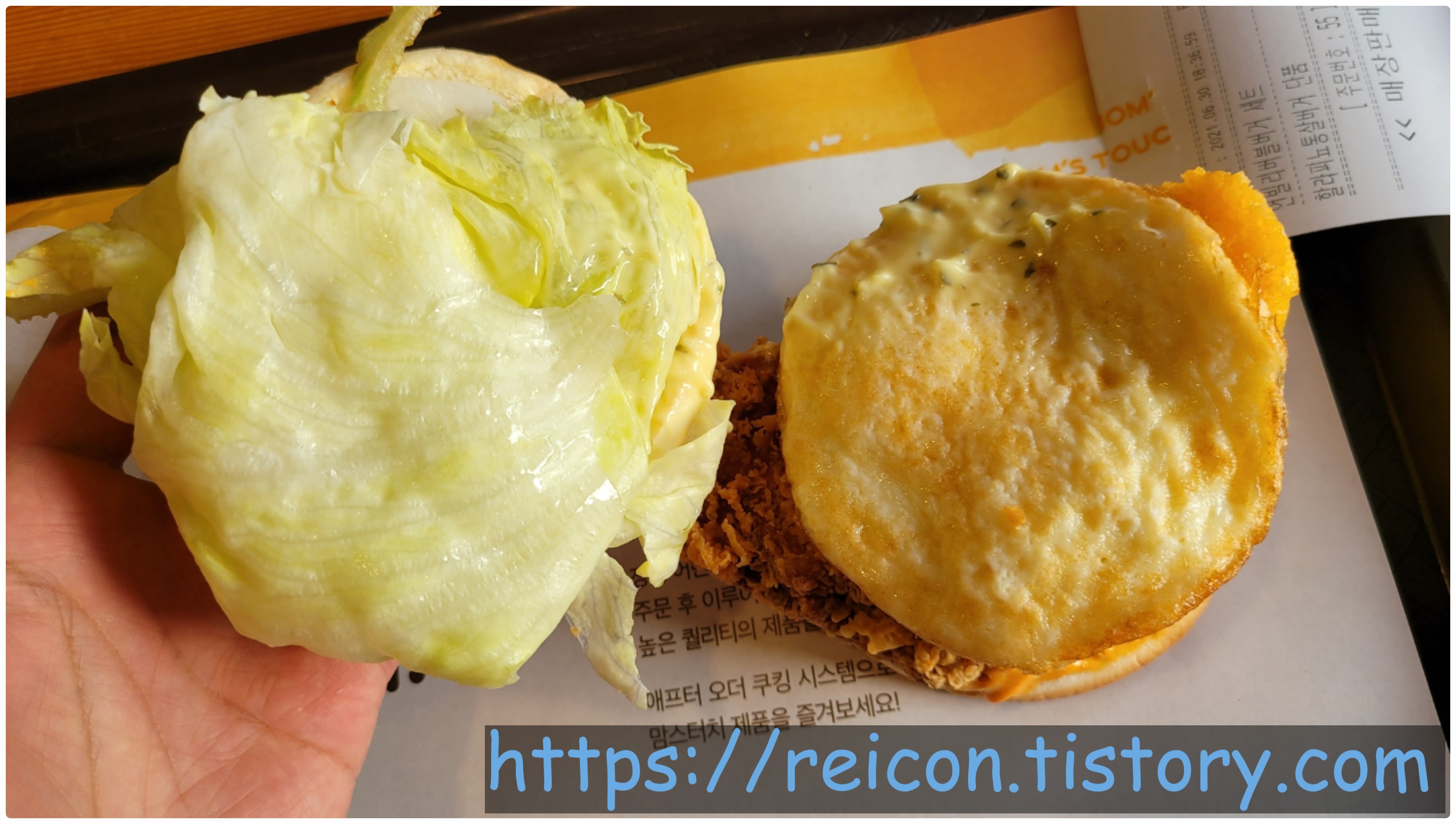 버거에서 빠지는 순간 버거가 퍽퍽하게 느껴질 정도로 숨겨진 조력자이자, 특유의 부드러운 식감으로 중심을 잘 잡아준 중요한 재료이기도 했구요.