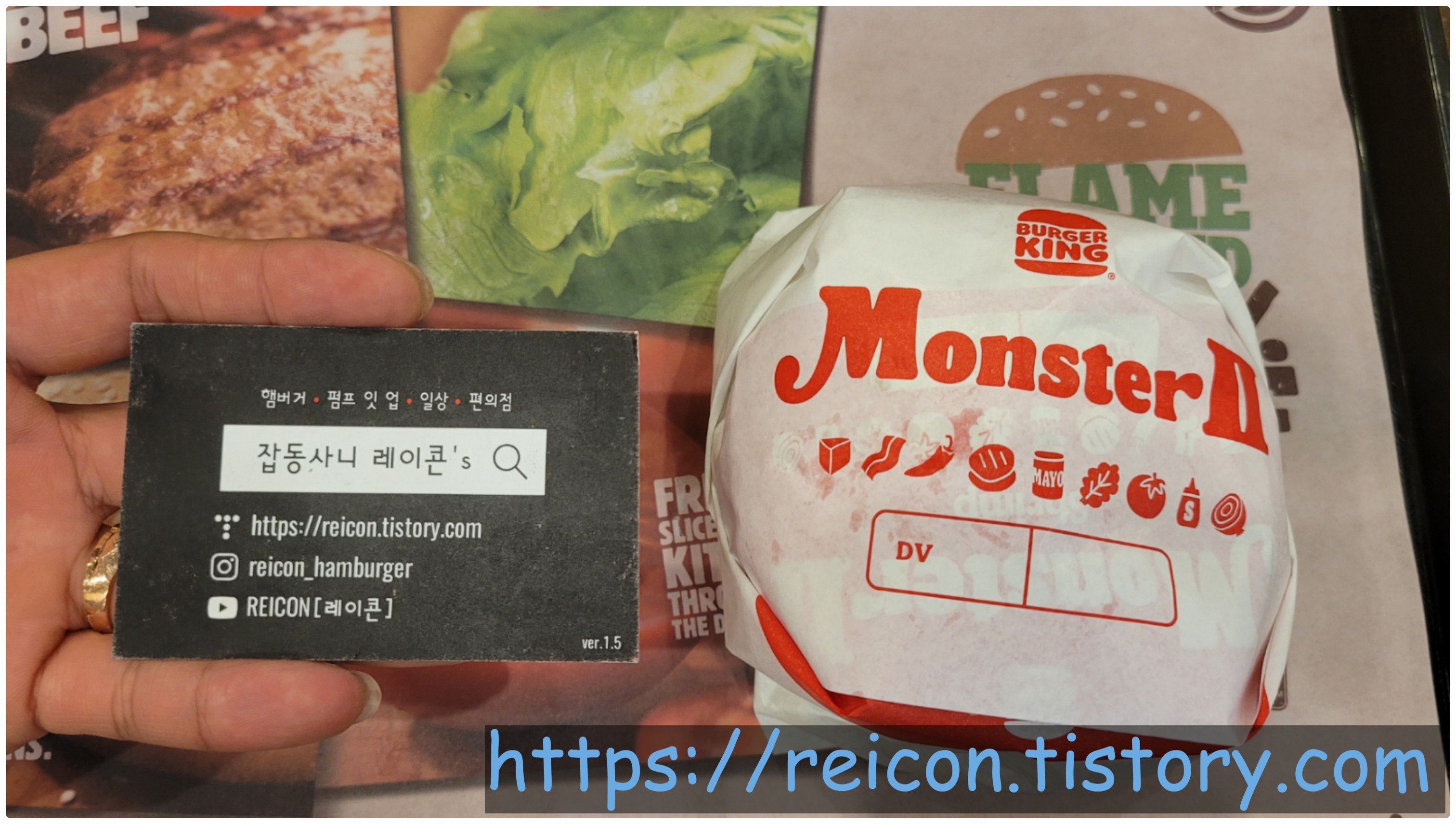 패티는 2가지가 들어가며, 그 외에도 온갖 재료들과 버거킹 치트키인 '디아블로 소스'까지 들어가는 아주 끝장나는 구성의 버거죠.