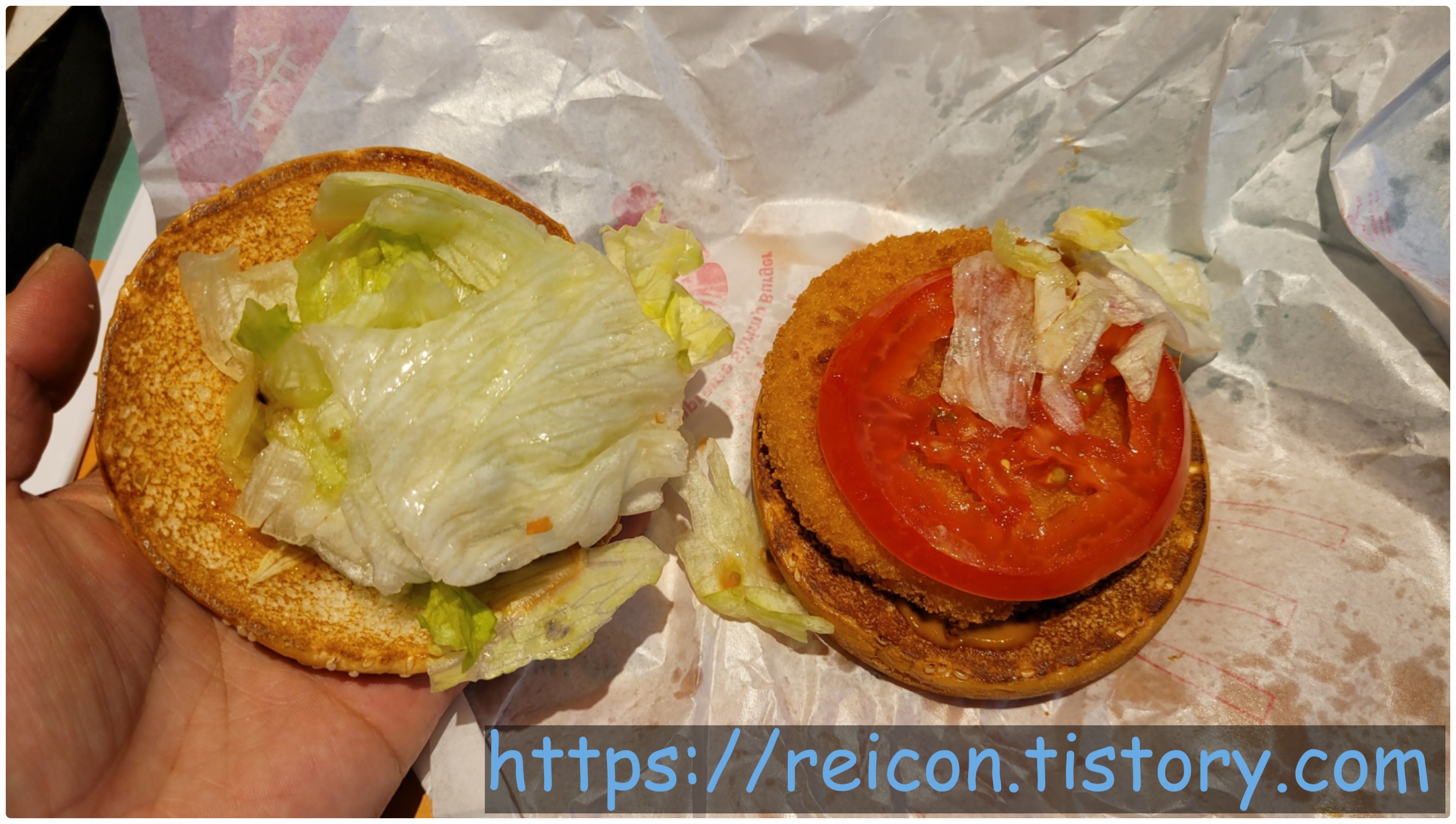 뭔가 덜 익은 듯한 물렁한 느낌도 공존하며, 토마토는 새콤함이 전혀 없어서 패티랑 잘 안 맞는 느낌이었구요.