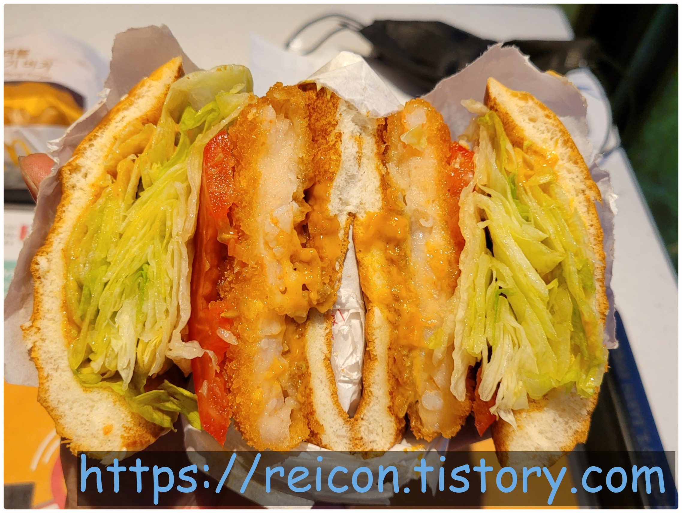 새우 패티의 새우살이 통통하며 튀김옷이 바삭한 것은 똑같지만, 전체적으로 맛이 뭔가 밍밍해졌습니다.