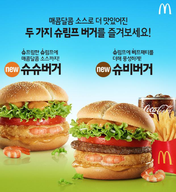 맥도날드의 버거 중 새우 패티를 사용한 버거로는 '슈슈버거'가 있죠.