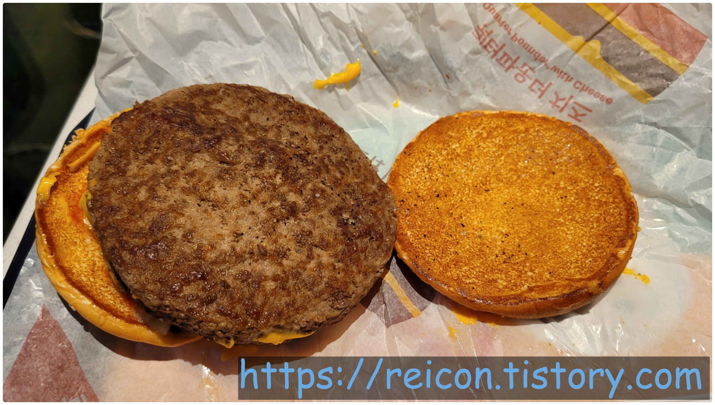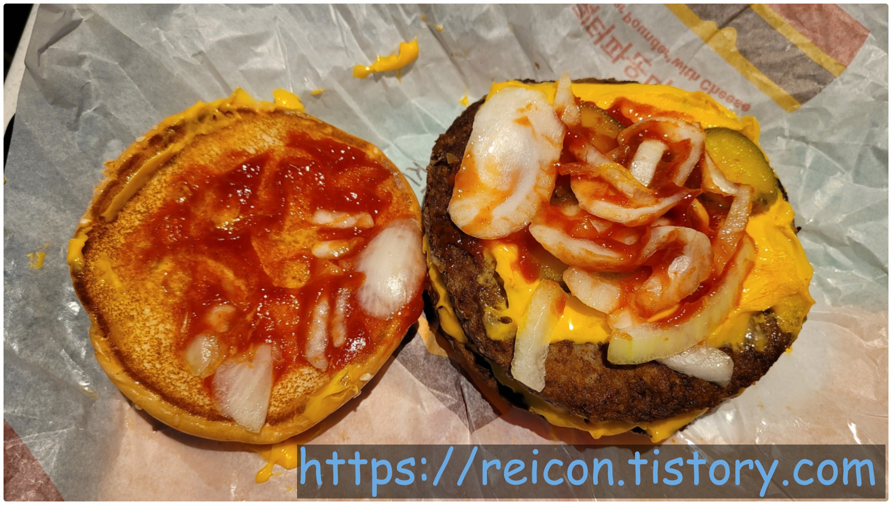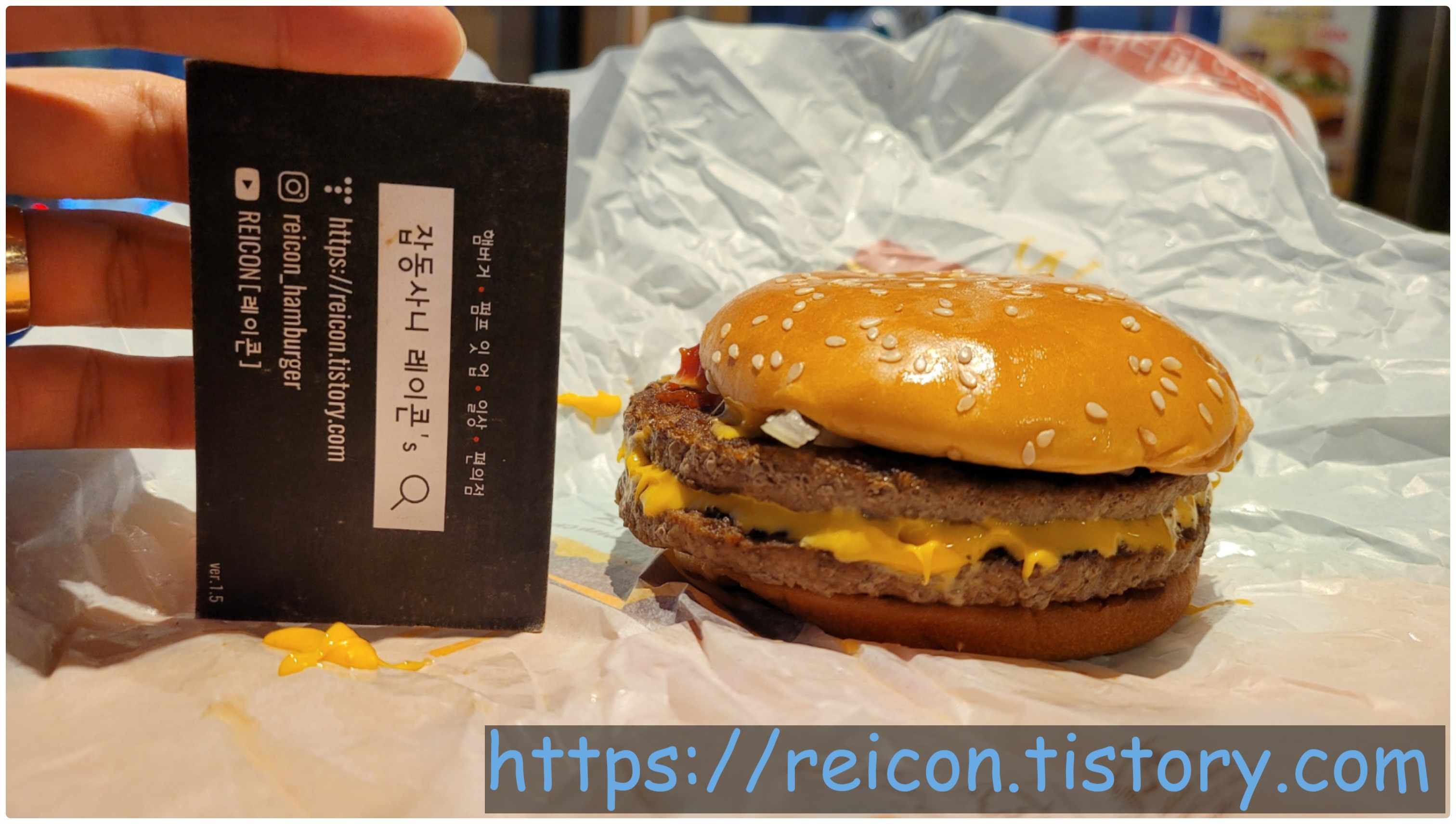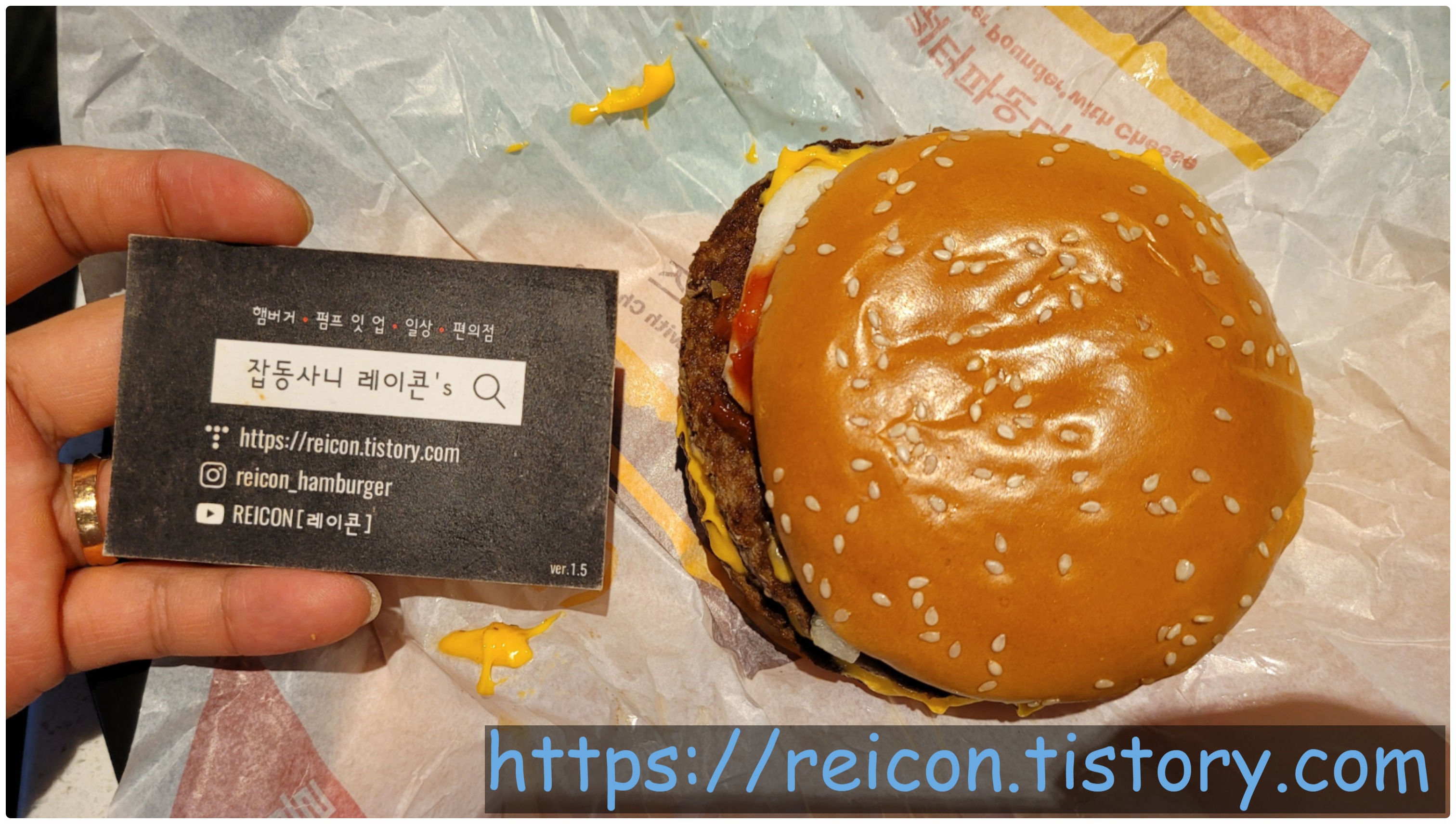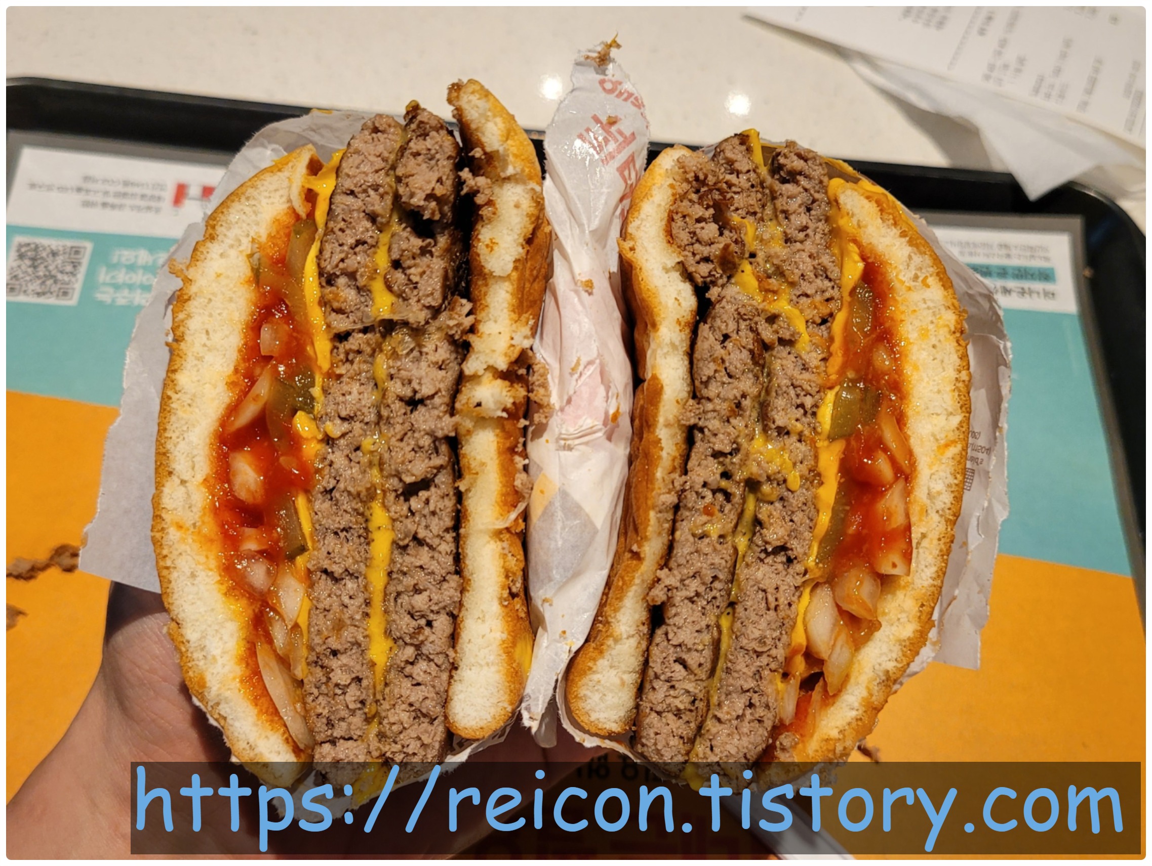 그리고 다른 버거와 비교를 하자면 버거킹 '스태커 2 와퍼'가 비슷한데, 개인적으로는 버거킹쪽이 더 맛있긴 하지만 가격의 차이가 있어서 그냥 취향대로 즐기면 될 것 같습니다 ㅎㅎ