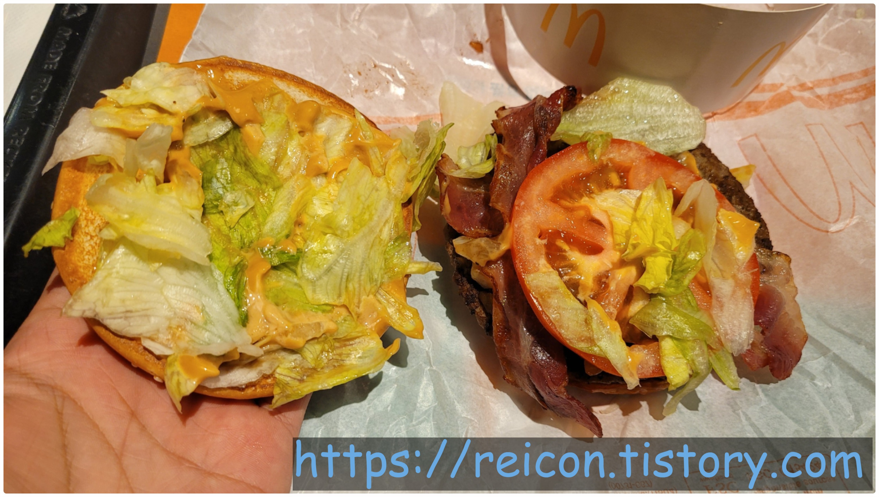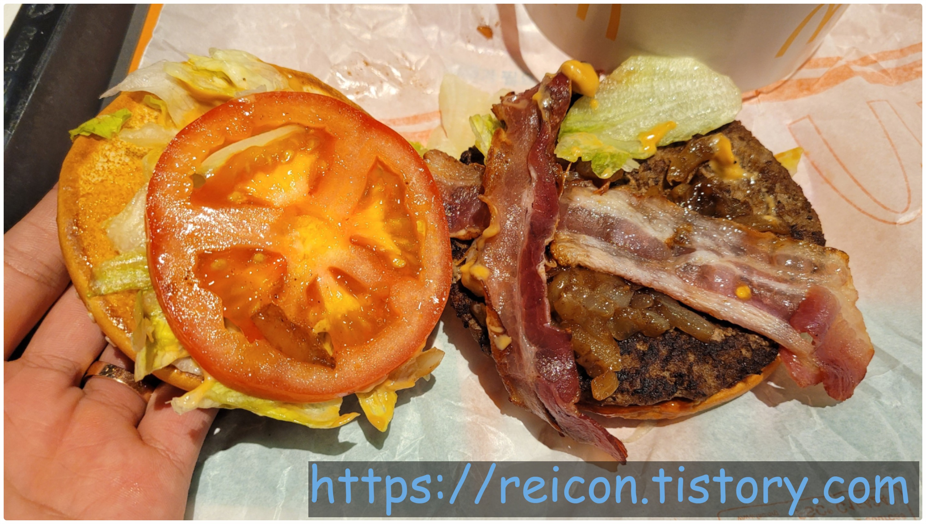 그래서 '더블 베이컨'을 강조한 버거지만 베이컨의 맛은 더블이 되지 않기도 했구요.