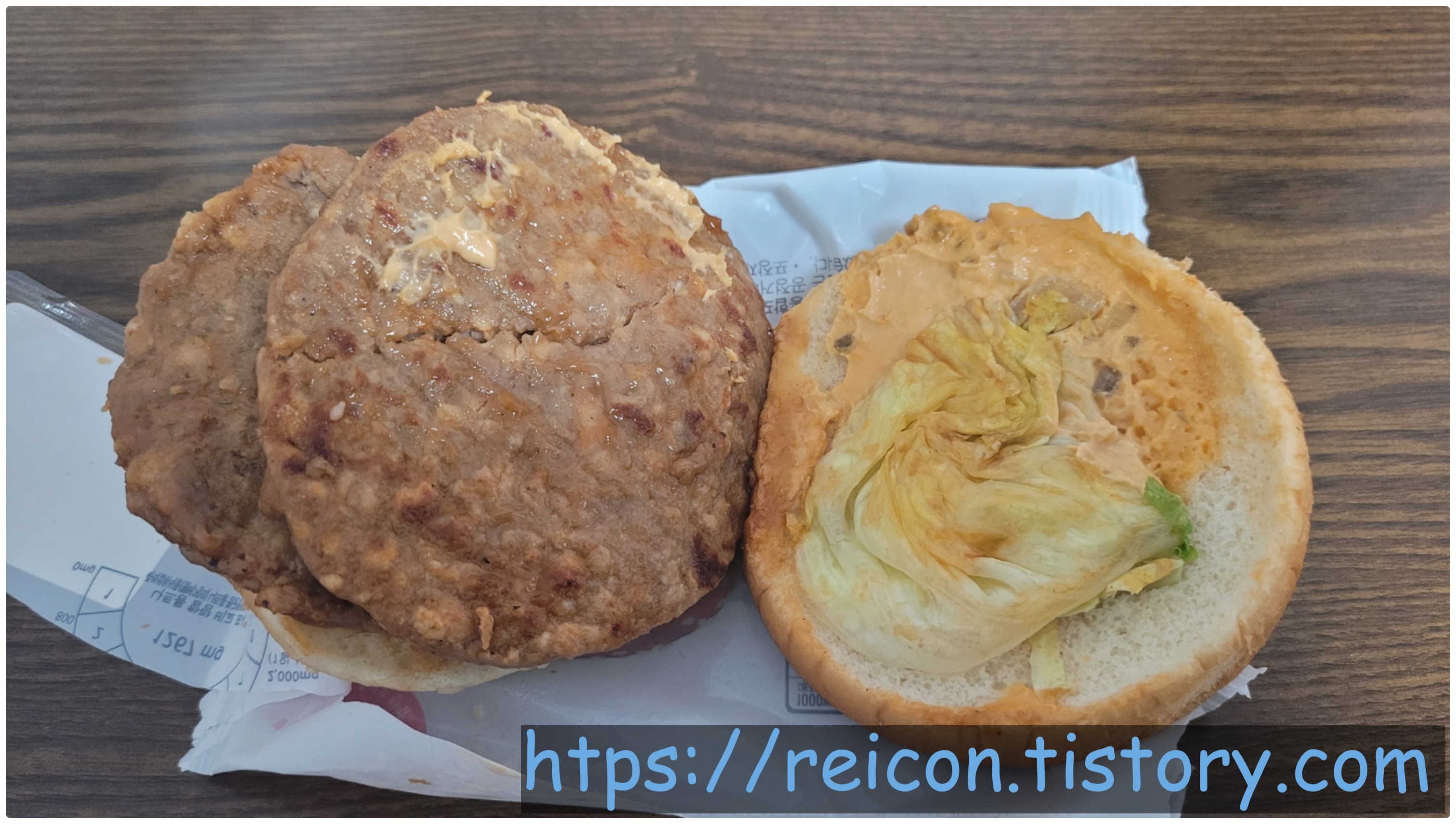 다만 그와 다르게 더블 패티의 느낌은 확실해서 살짝 묵직한 식감에 달달한 불고기 소스가 진하게 나서 그냥 더블 불고기버거에 가까운 맛이기도 했구요.