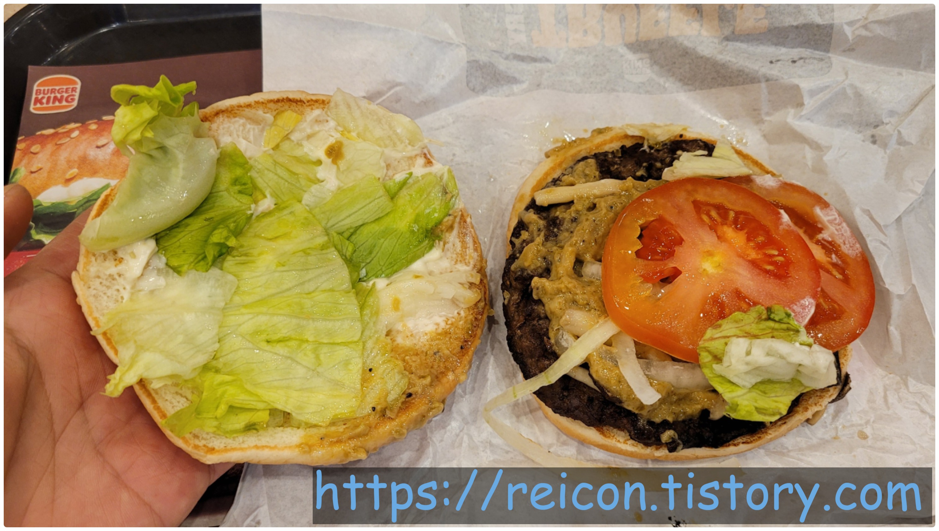 처음 먹자마자 올라오는 트러플 향과 버섯 식감이 정말 트러플 머쉬룸와퍼가 부활한 듯 똑같은데, 문제는 처음에 1초만 똑같아서 '1초 버거'라고 부르고 싶어질 정도입니다.