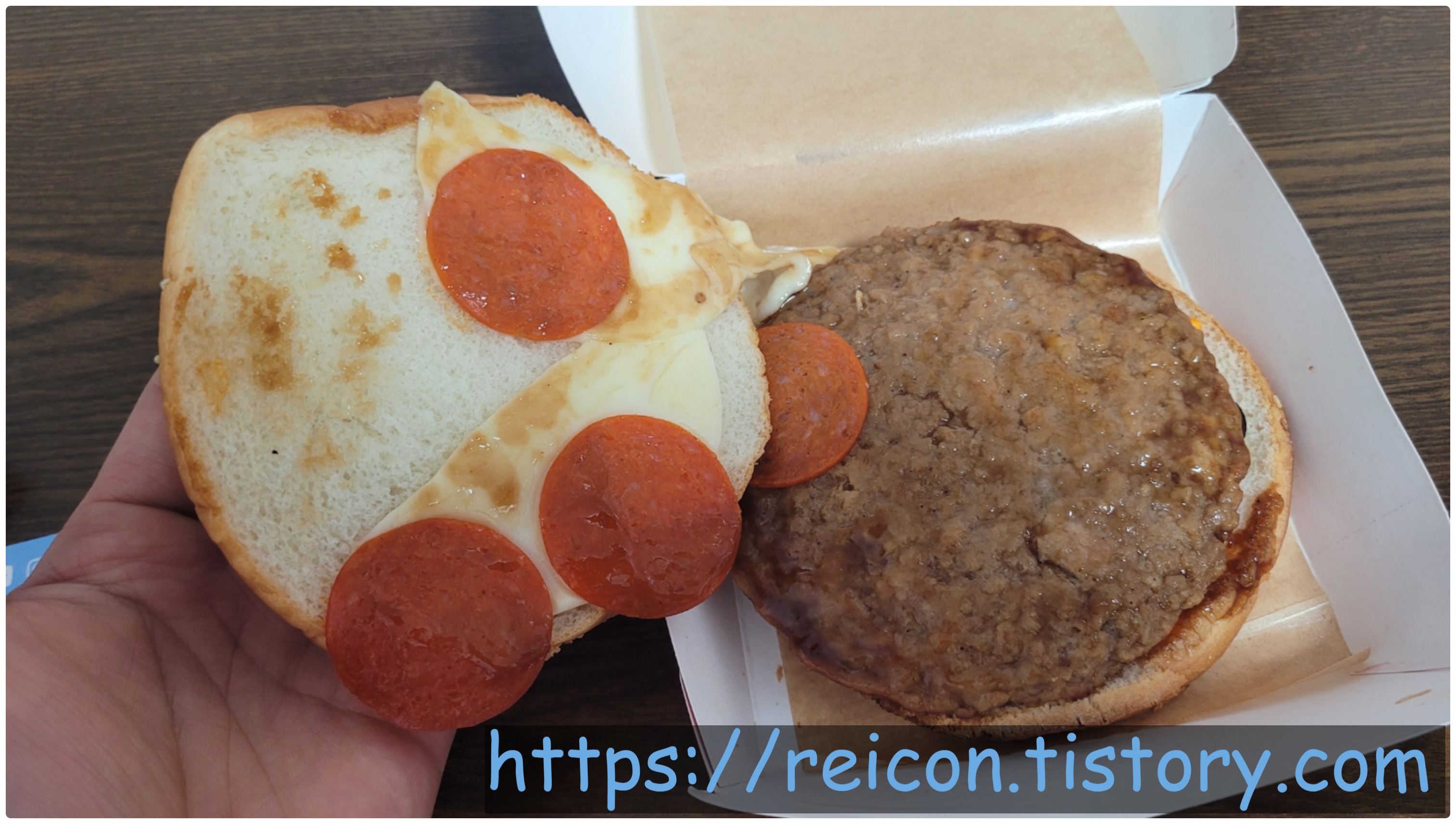 노브랜드버거의 '페퍼로니'(링크)와 비슷하게 구성으로, 정말 피자에 들어가는 재료들이 들어갔군요.