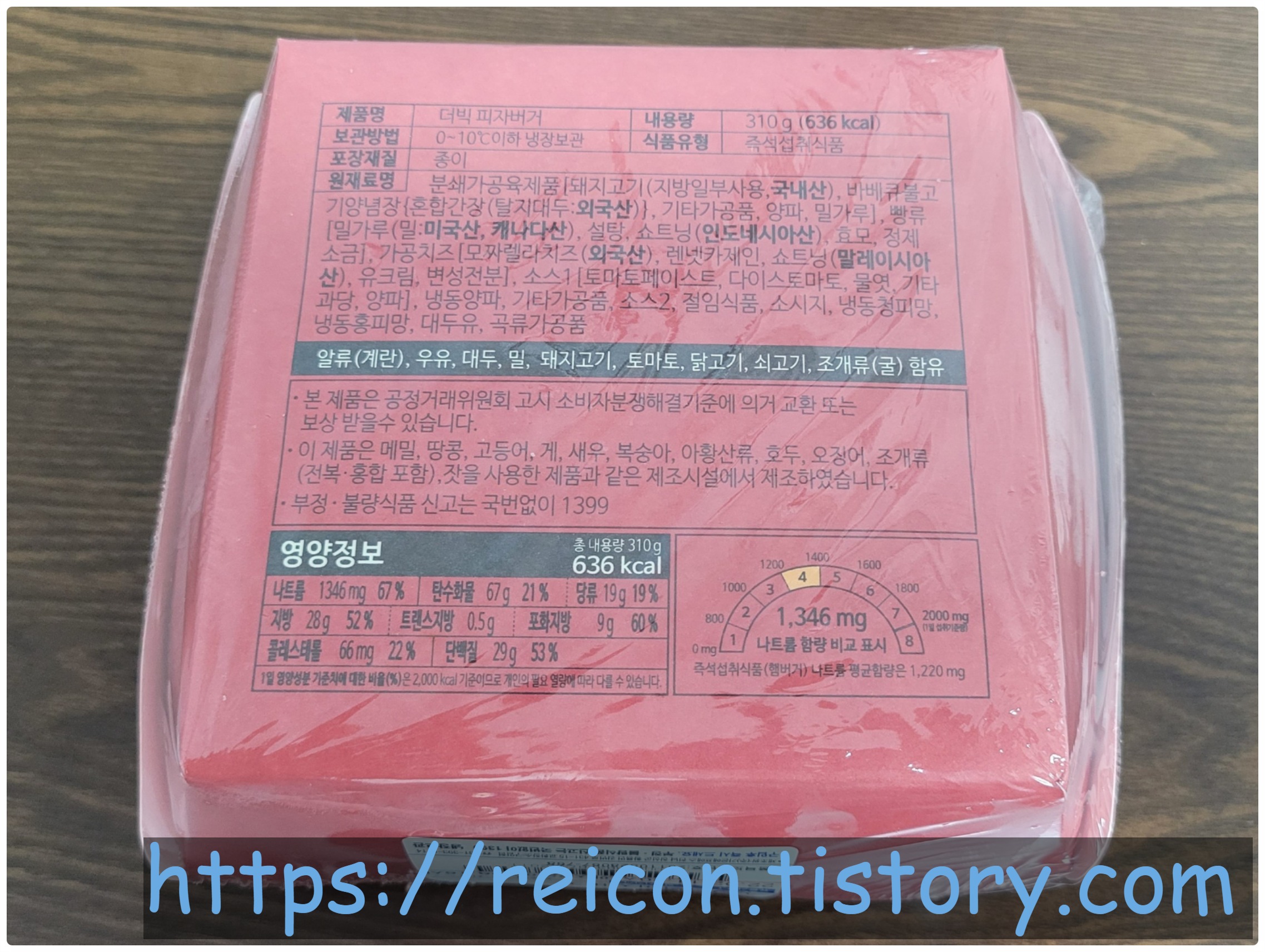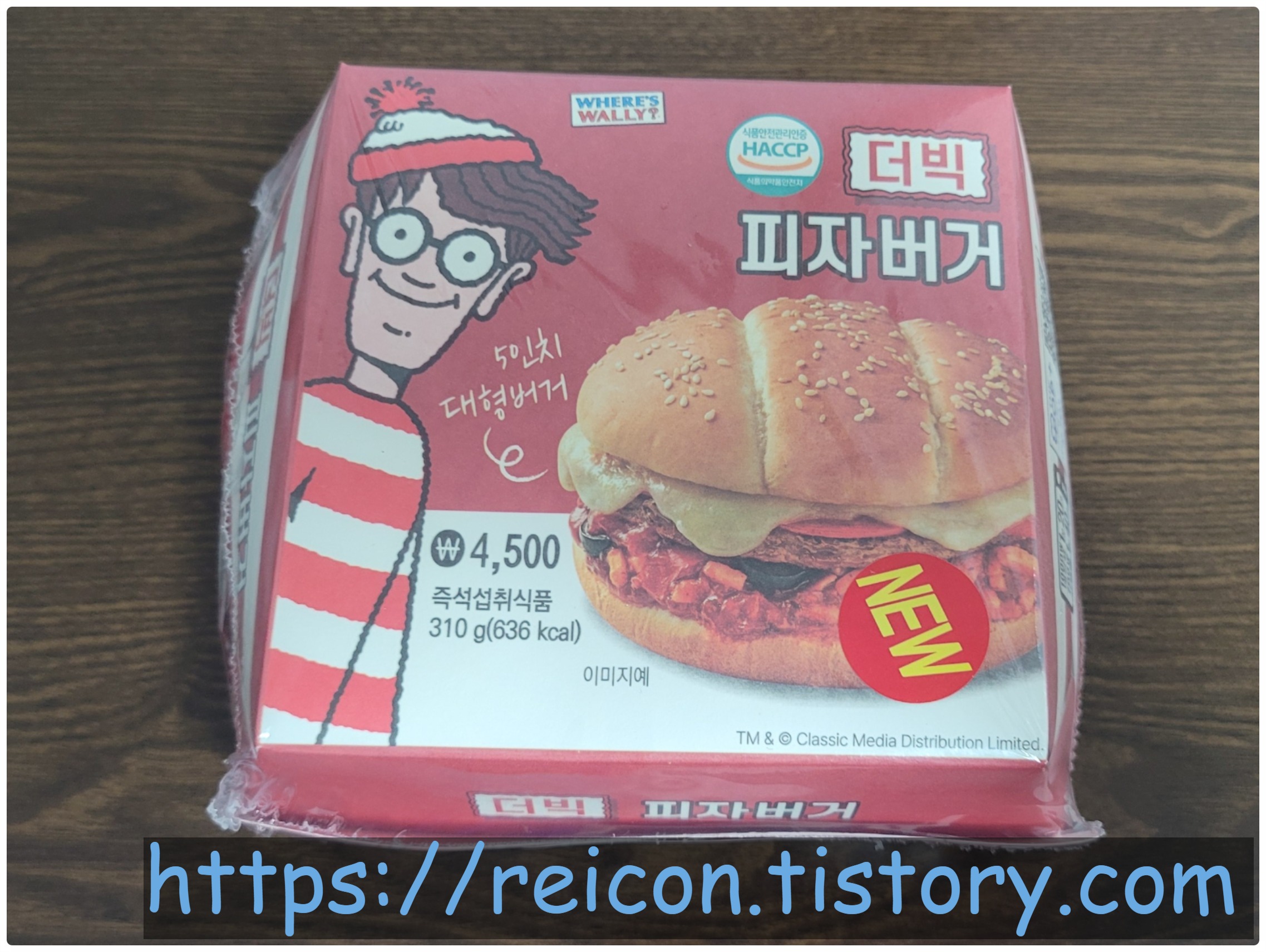 버거의 구성은 '모짜렐라 치즈, 페퍼로니, 패티, 올리브, 매콤한 소스와 각종 피자 재료들'로 되어있네요.