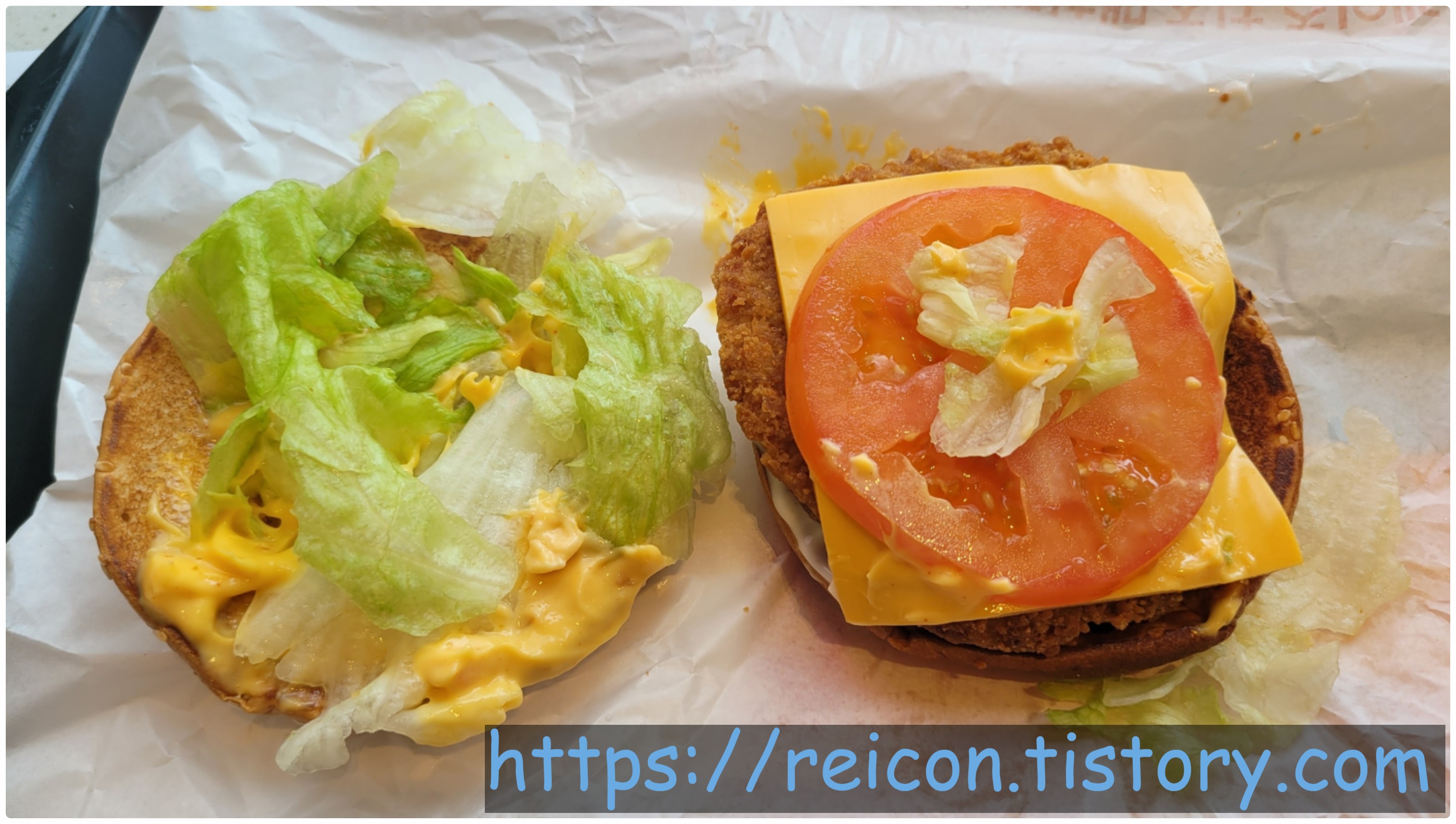 토마토가 이상할 정도로 튀어서 불협화음 그 자체였고, 그로 인해 치즈의 맛을 완벽하게 죽이는 데다가 양상추의 존재감까지 죽여버렸습니다.