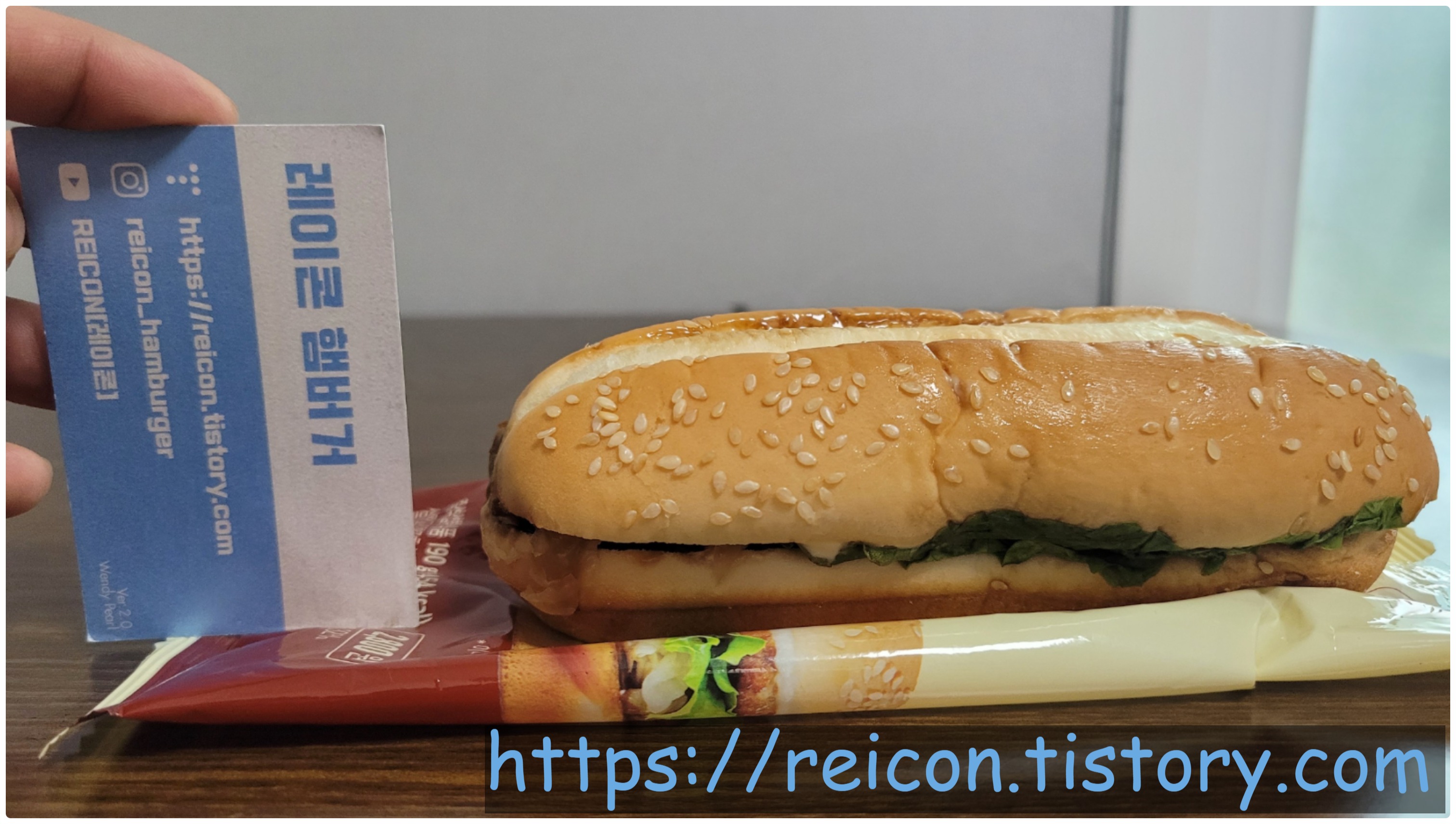 버거의 구성은 '길다란 번과 패티, 그리고 소스에 버무려진 야채들'로 되어있습니다.