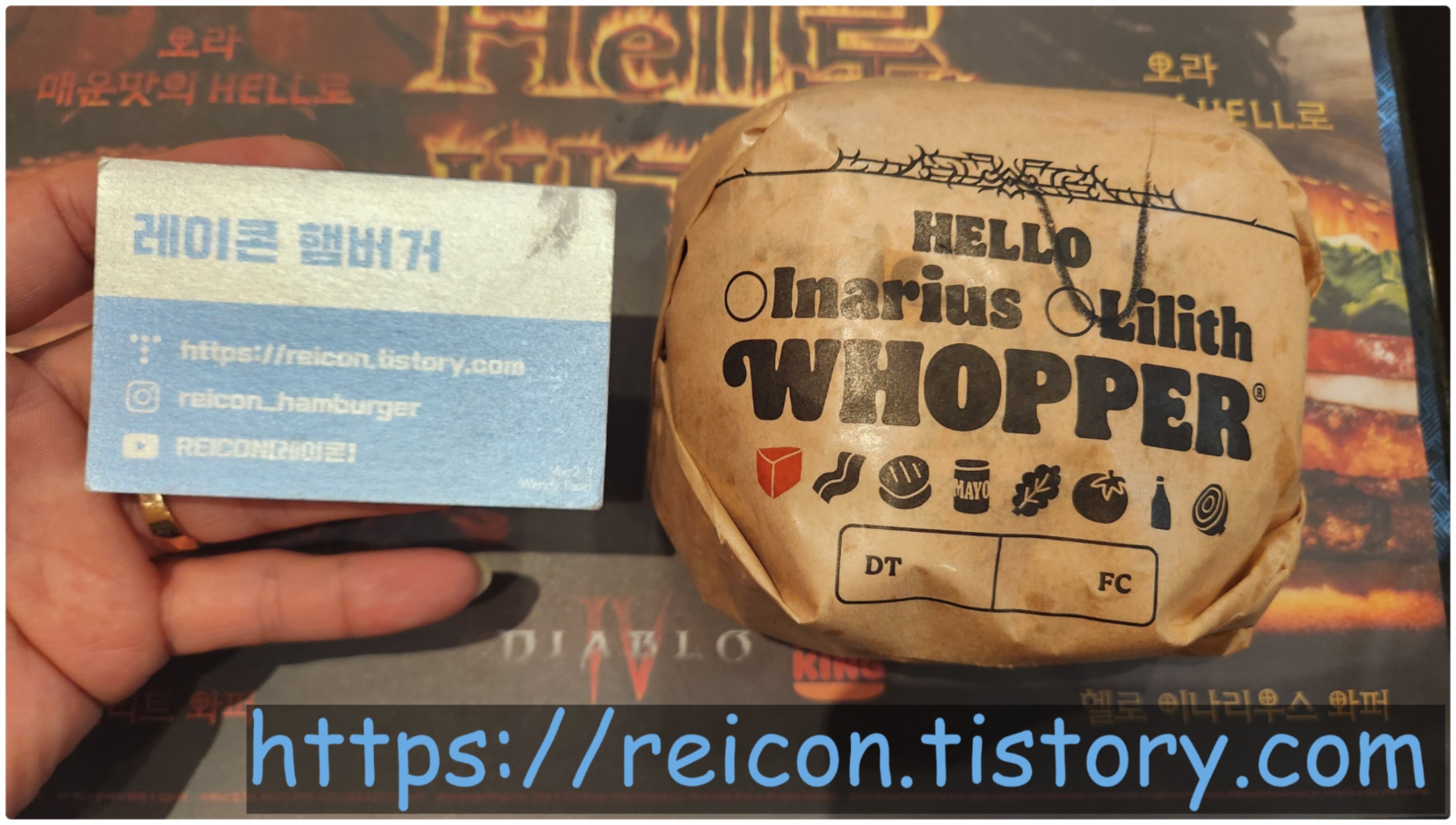 무려 전세계를 뒤집을(이번엔 ㄸㅗㅇ4가 되진 않겠지..?) 게임 '디아블로 4'와 콜라보하여 출시한 '헬로 릴리트 와퍼, 헬로 이나리우스 와퍼'입니다.