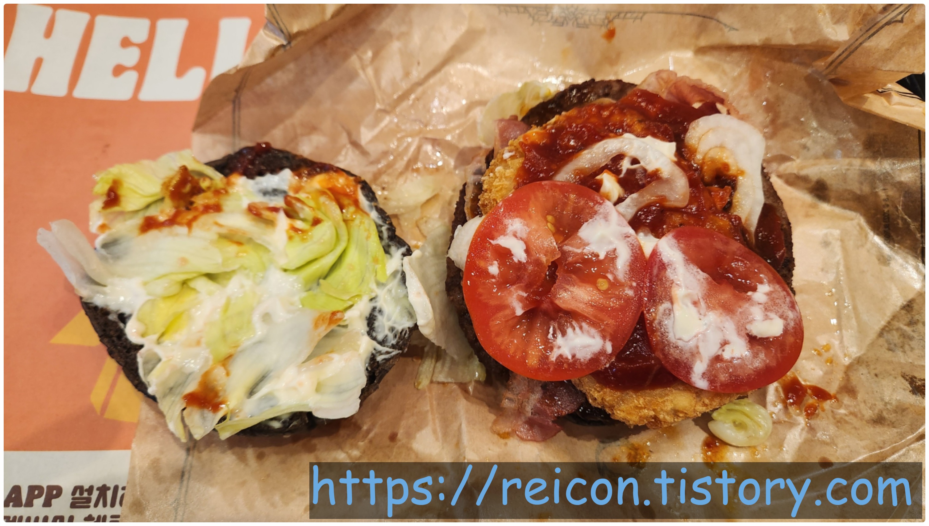 4. 블랙번의 느낌과 베이컨의 조합으로 블랙바비큐 와퍼(구 기네스와퍼)(리뷰링크)의 맛도 납니다.