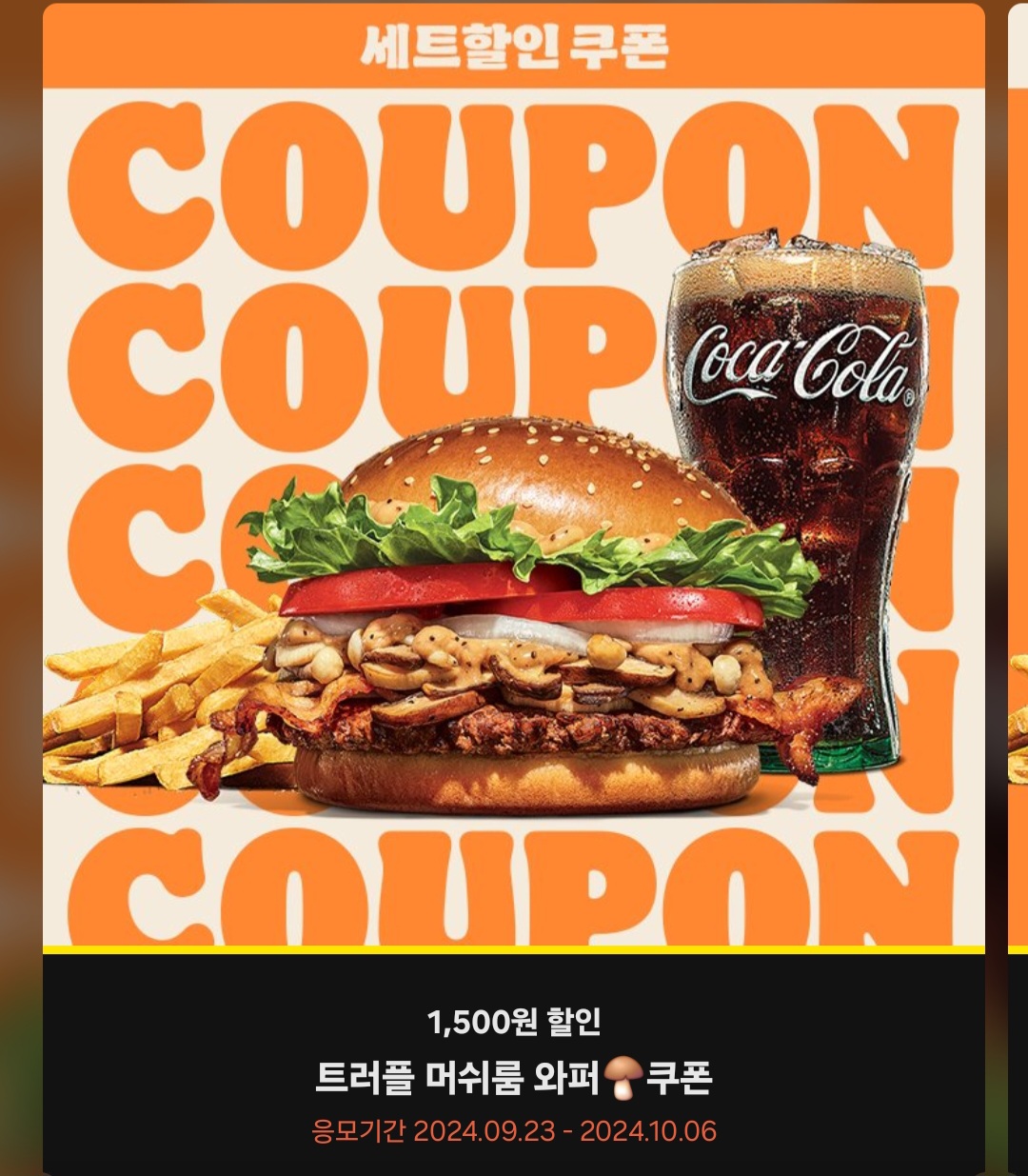 이번에 나온 신메뉴 '트러플 머쉬룸와퍼' 쿠폰도 있으니 참고하시길 바랍니다!!