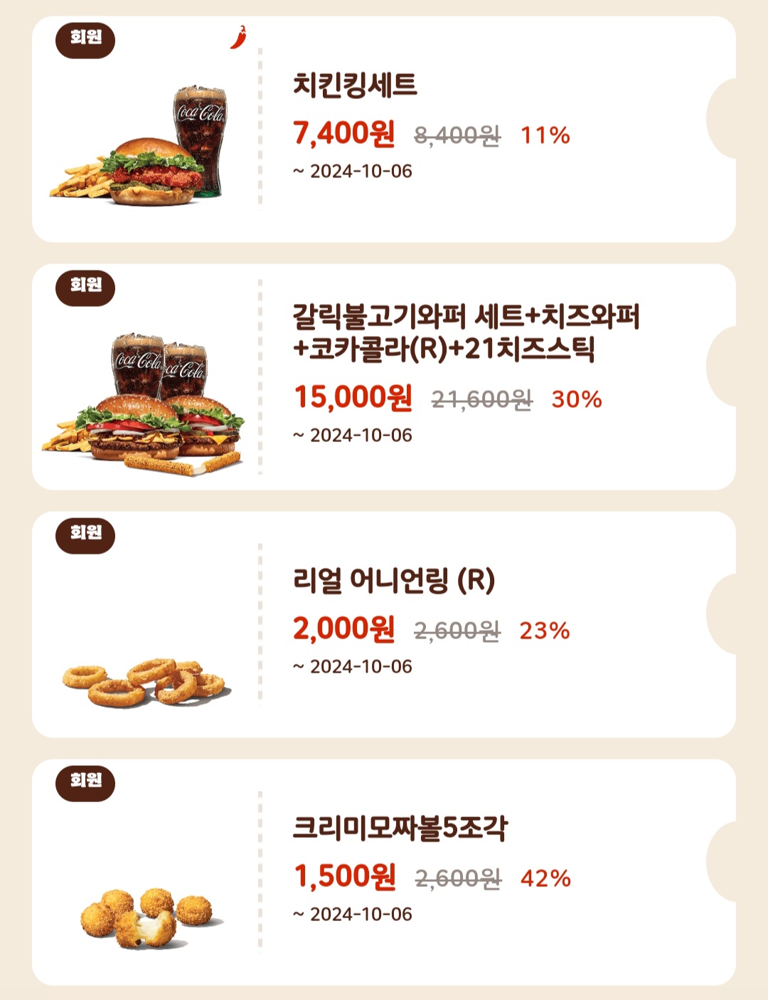 버거킹 앱 쿠폰들