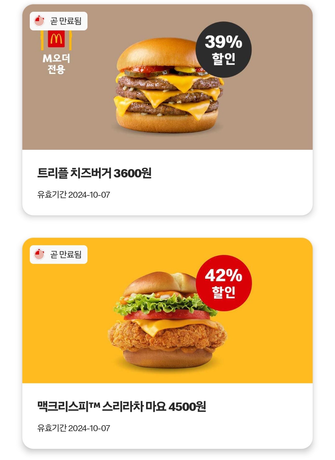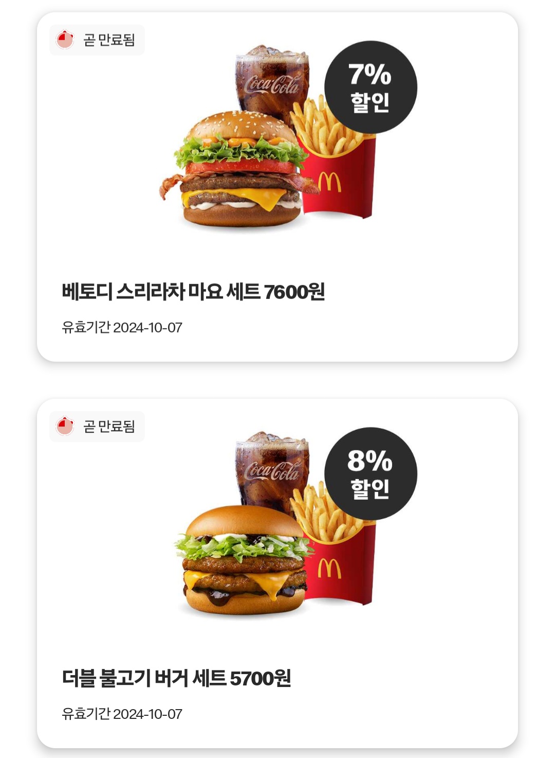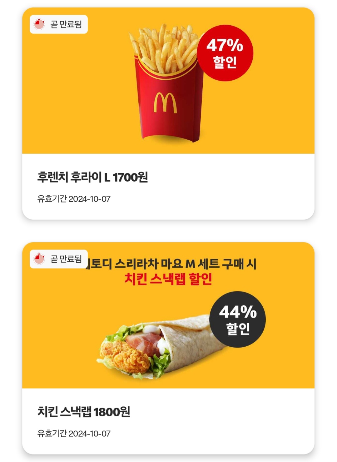 2. 각종 쿠폰들 (맥도날드 앱)