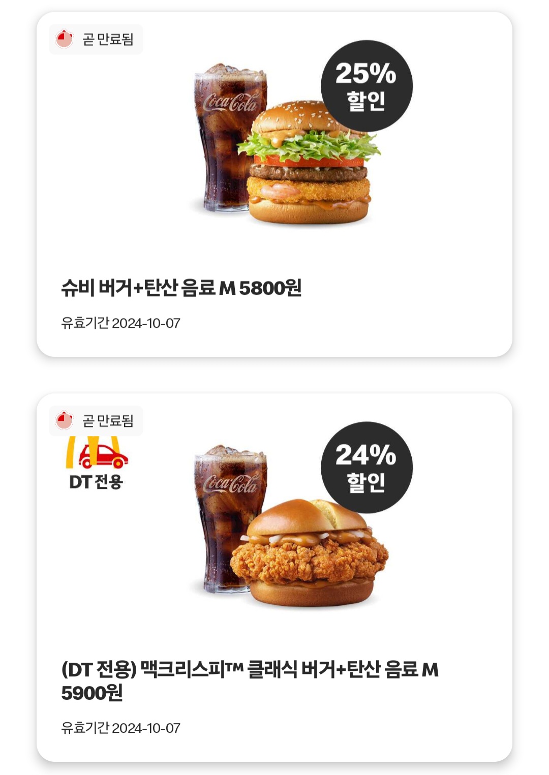 맥도날드 앱 쿠폰들
