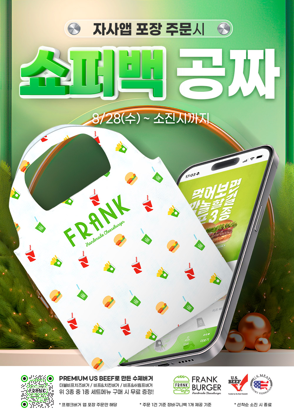 프랭크버거 10월 행사 첫 번째, 앱 포장 주문 시 '쇼퍼백'을 증정합니다!